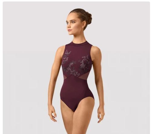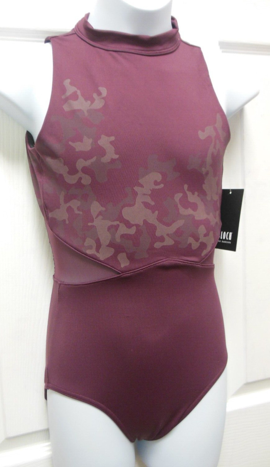 Bloch L4335 Open Mesh Turtleneck leotard Wine Camo Print Ladies Petite