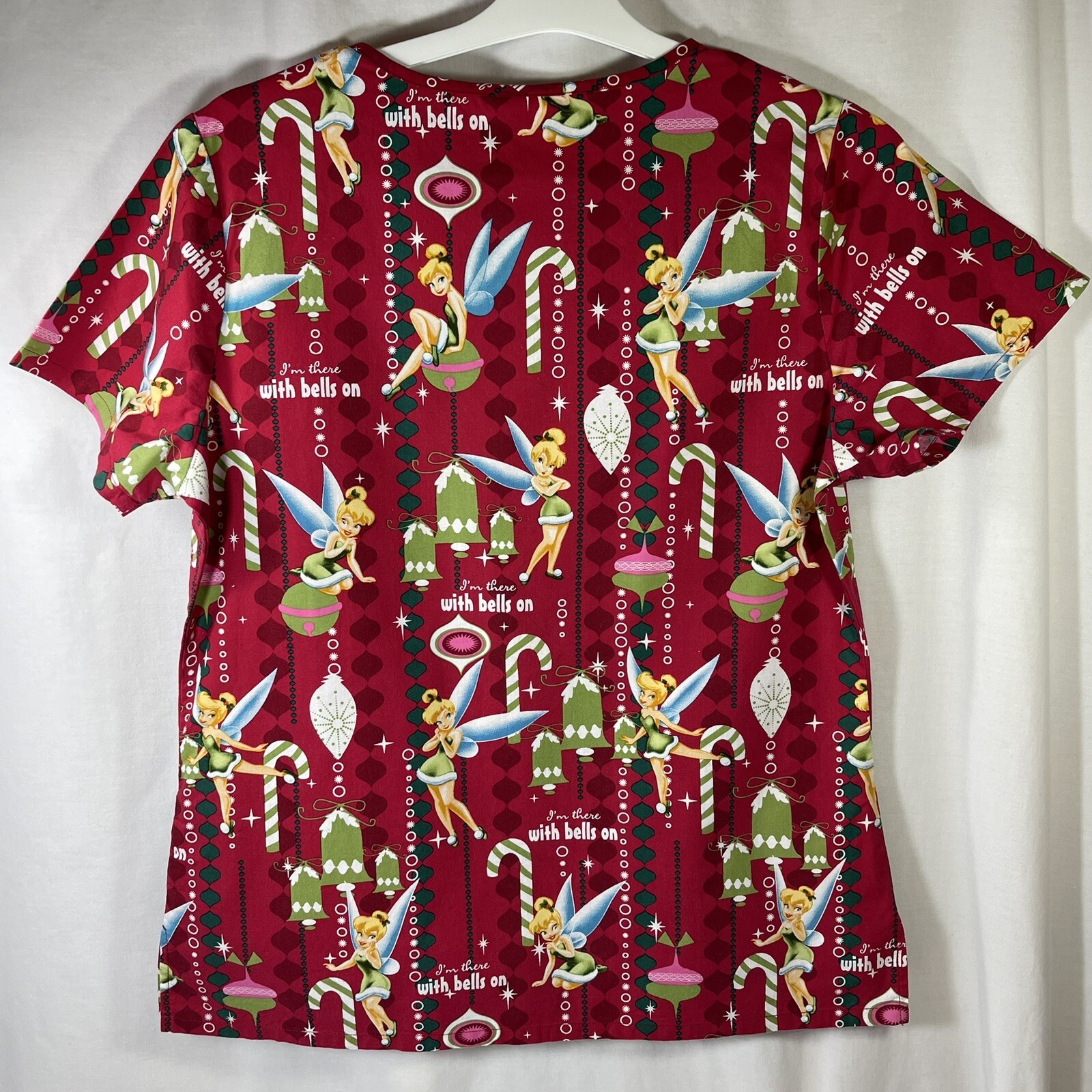 как выглядит Disney Tinkerbell Small Christmas Scrub Top Red Ornaments Candy Canes Preowned фото