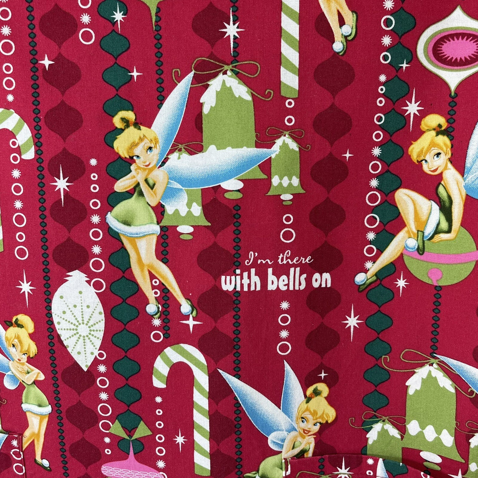 Disney Tinkerbell Small Christmas Scrub Top Red Ornaments Candy Canes Preowned