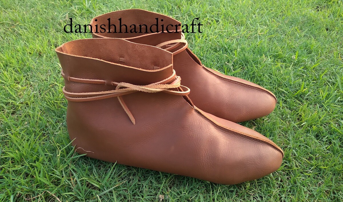 Medieval Era Leather lace boots pair Leather footwear pair brown color new