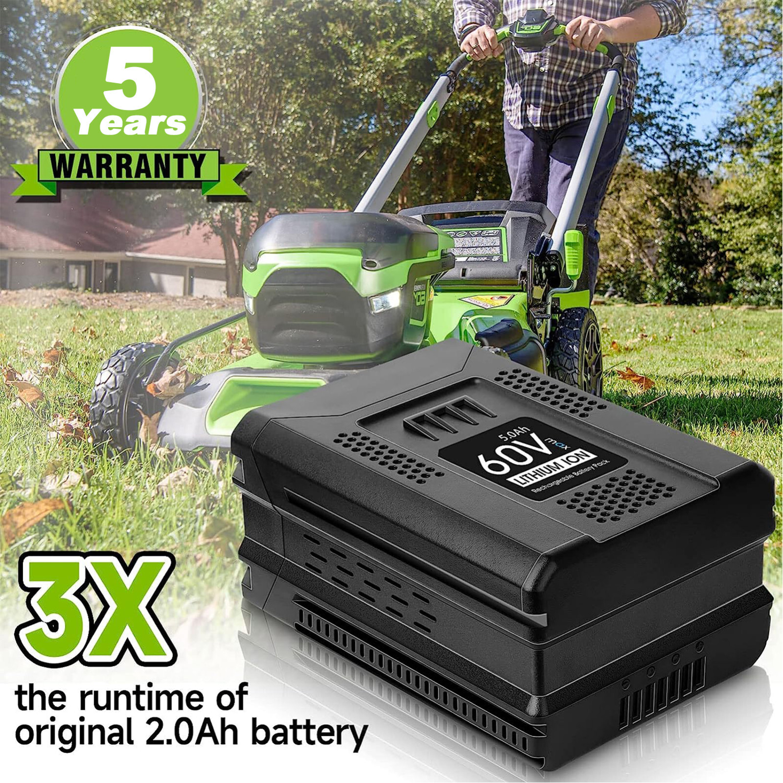 5.0Ah Lithium-Ion Battery For Greenworks 60V Max LB60A03 LB60A02 LB60A00 LB605