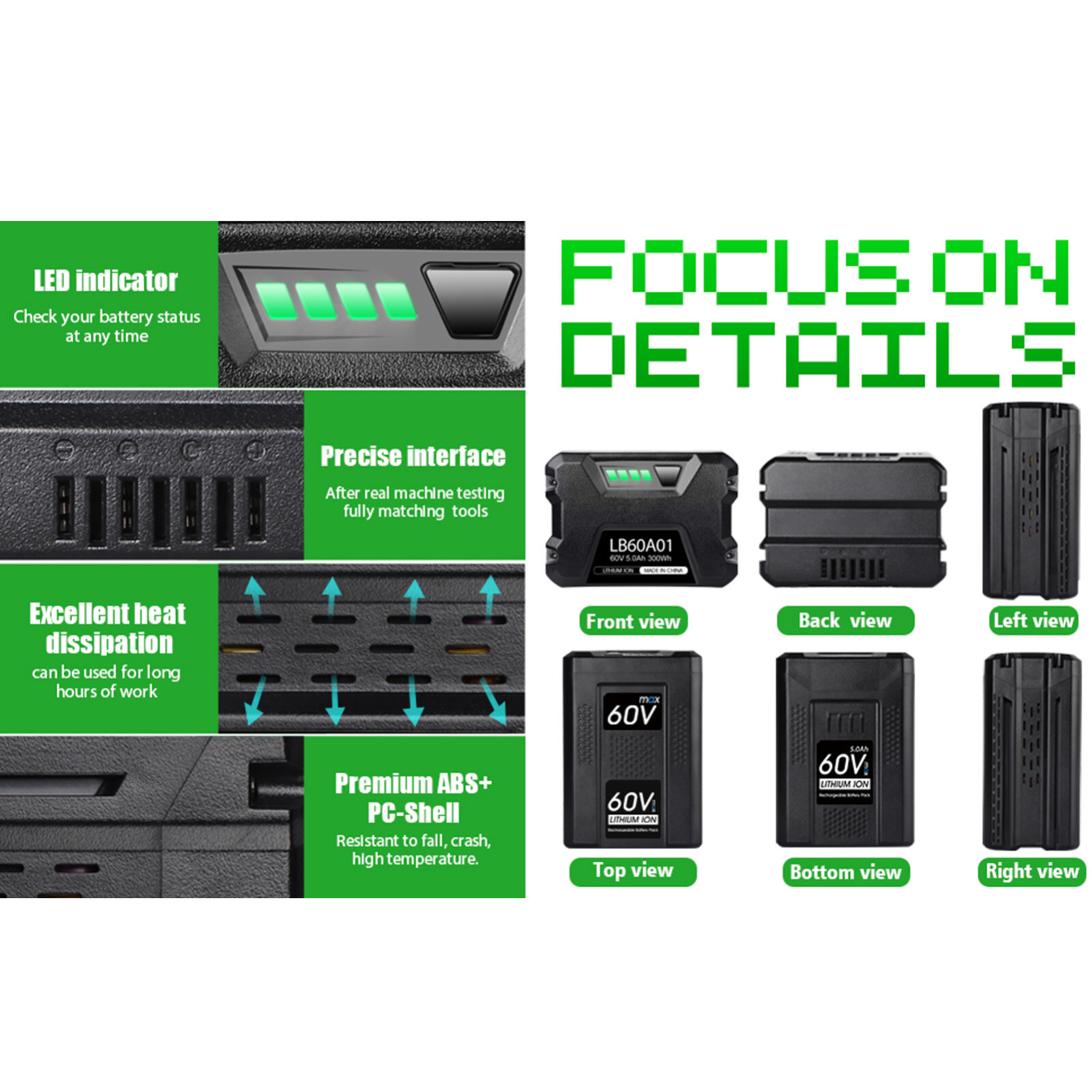Compatible battery model: For Greenworks 60V battery LB60A01 LB60A02 LB60A03