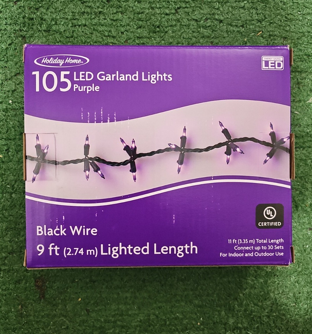 Holiday Halloween 105 LED Garland Lights, Orange or Purple Color 9ft 2.74 m