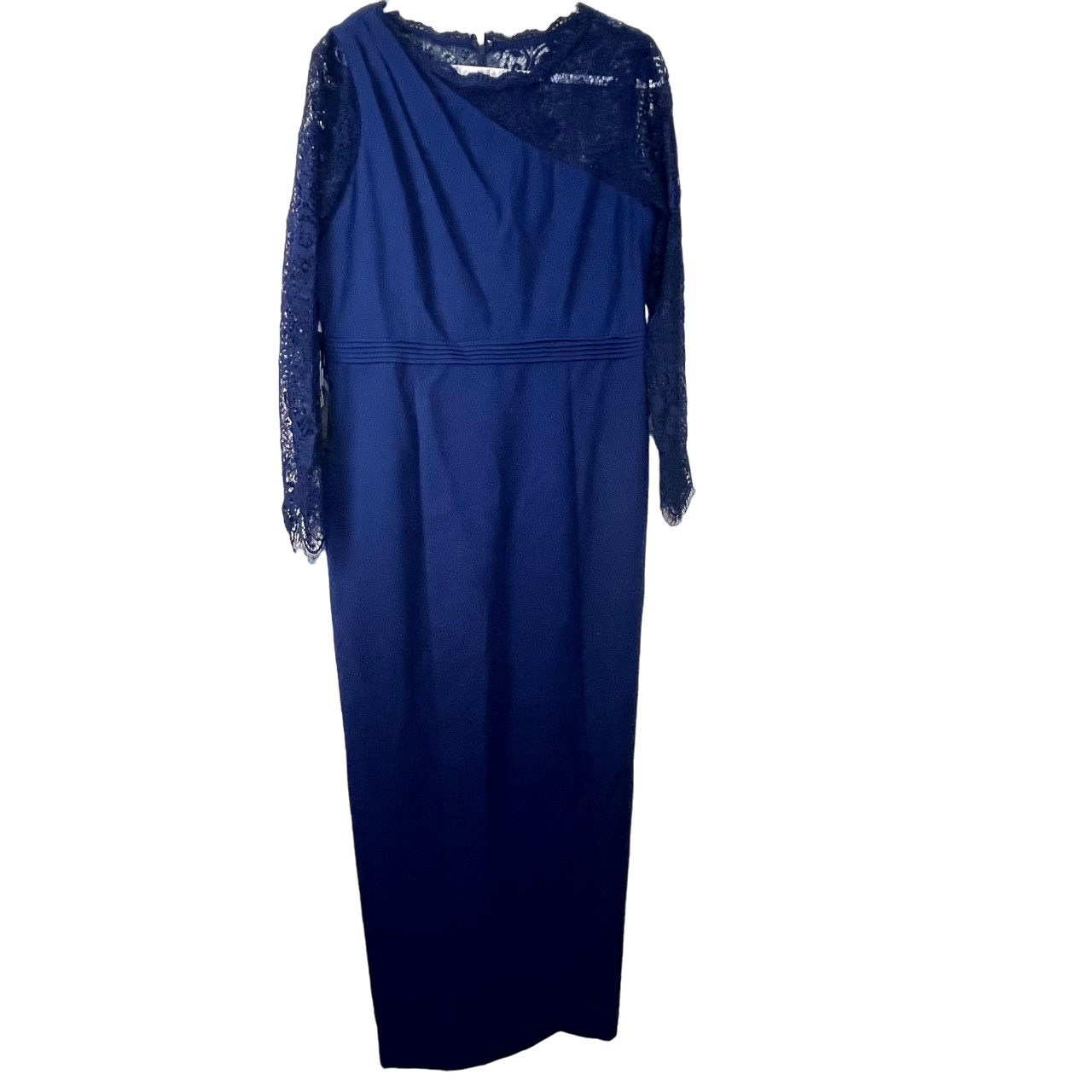 как выглядит JS Collection Blue Stretch Crepe Lace-Sleeve Gown NWOT Size 16 фото