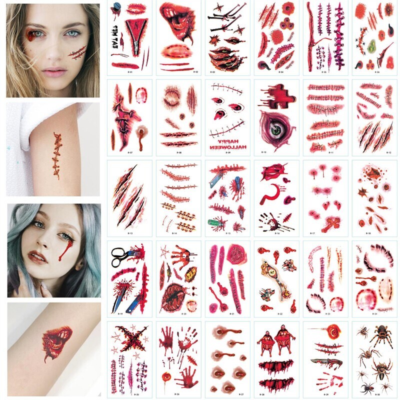 Halloween Lifelike Bloody Wound Scary Waterproof Temporary Tattoo Stickers