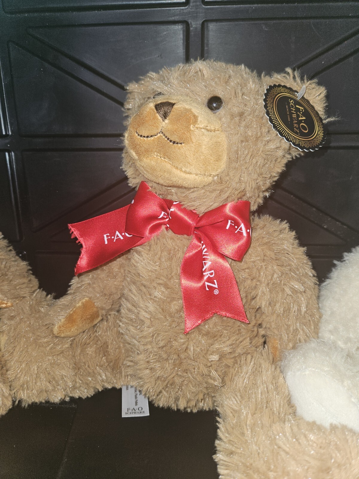 FAO Schwarz 3 Bear Plush Lot 2 Brown 1 White 2020 Ribbon Stuffy Soft