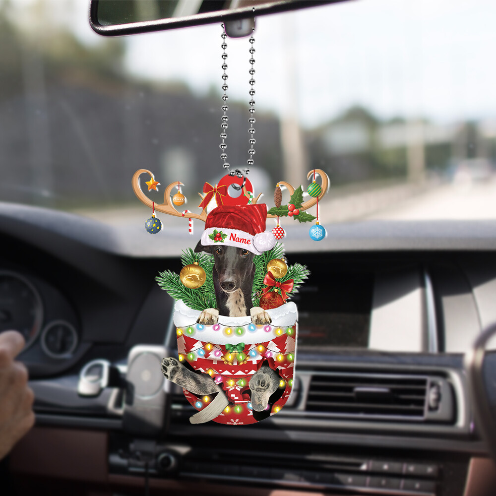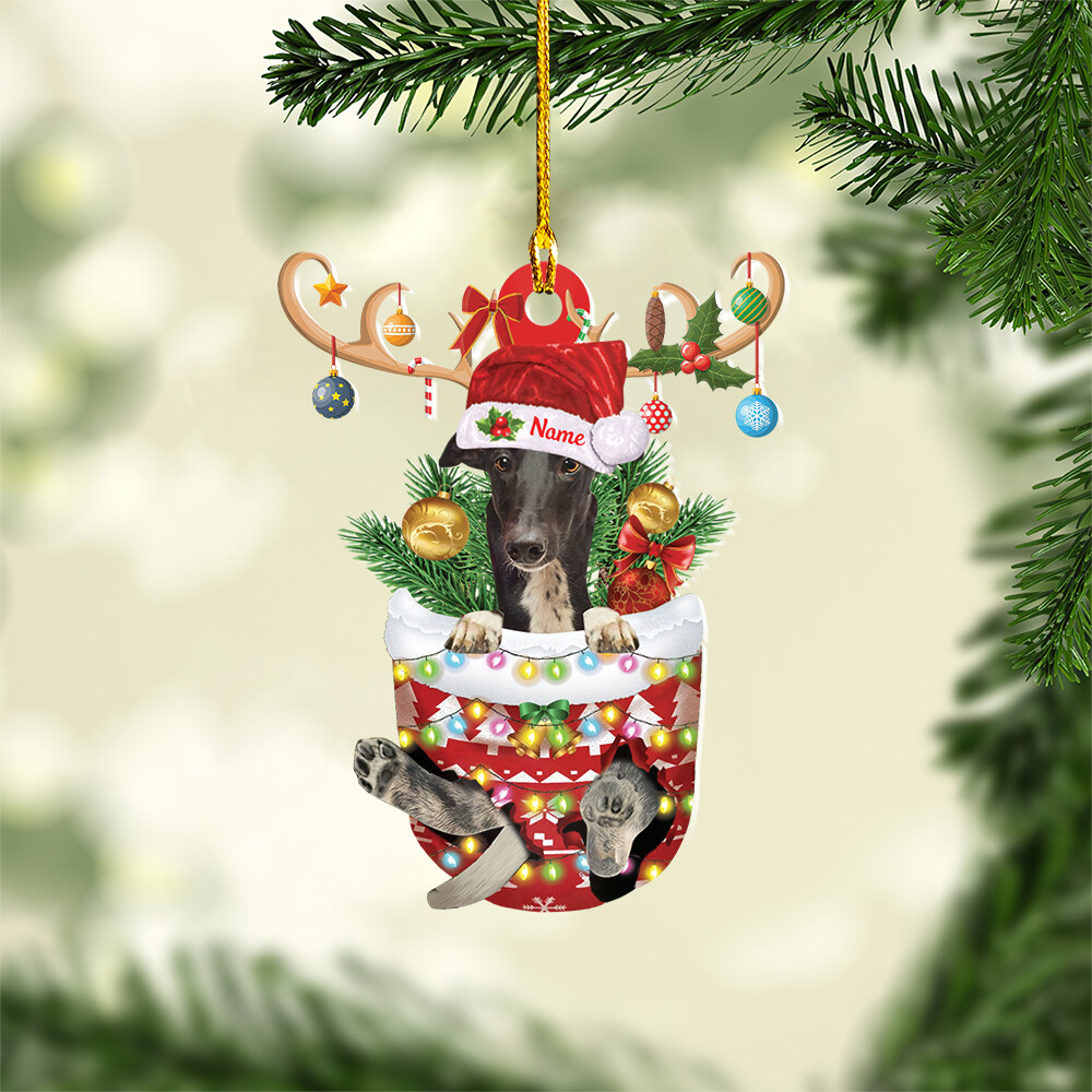 Personalized Greyhound Dog In Snow Pocket Christmas Ornament hanging decor