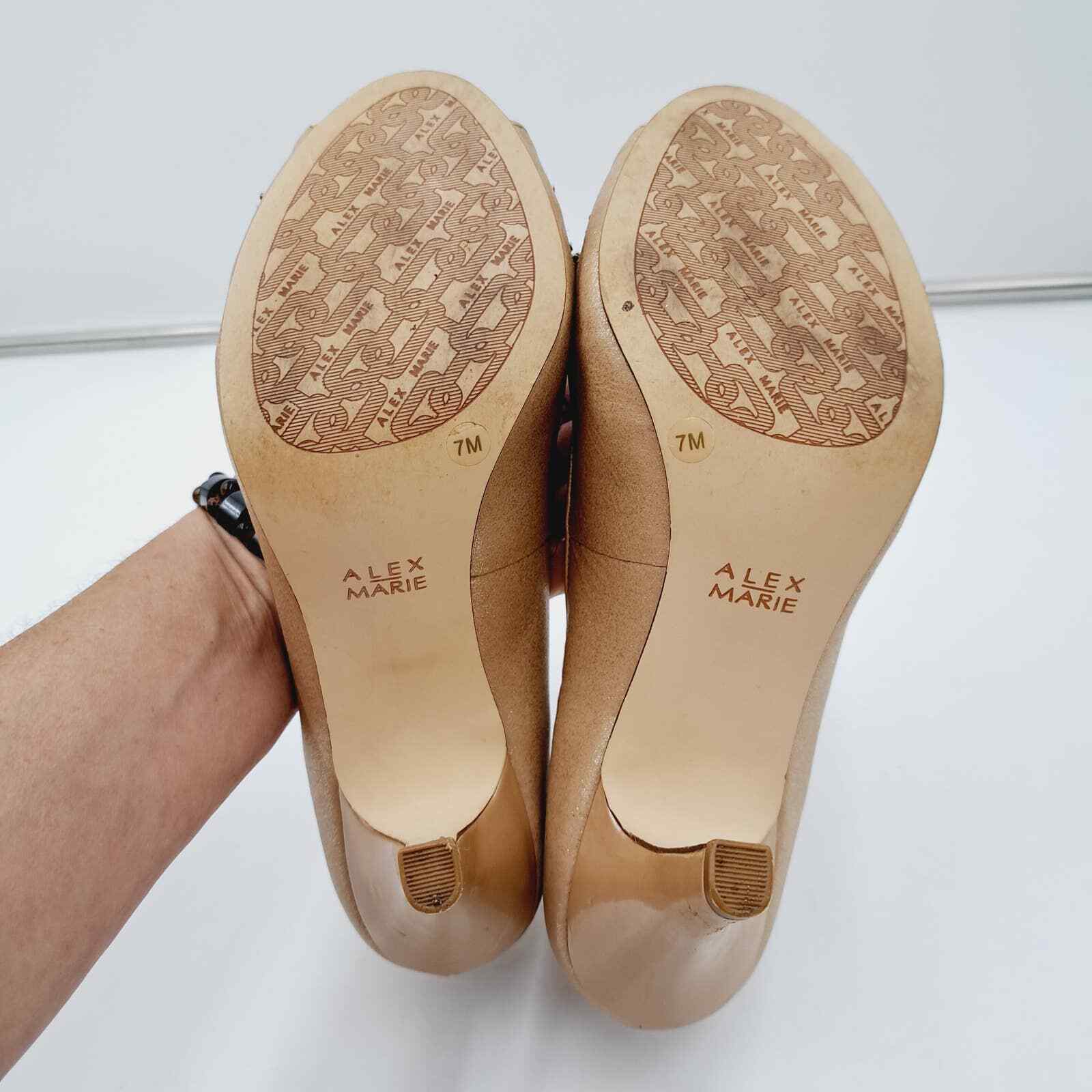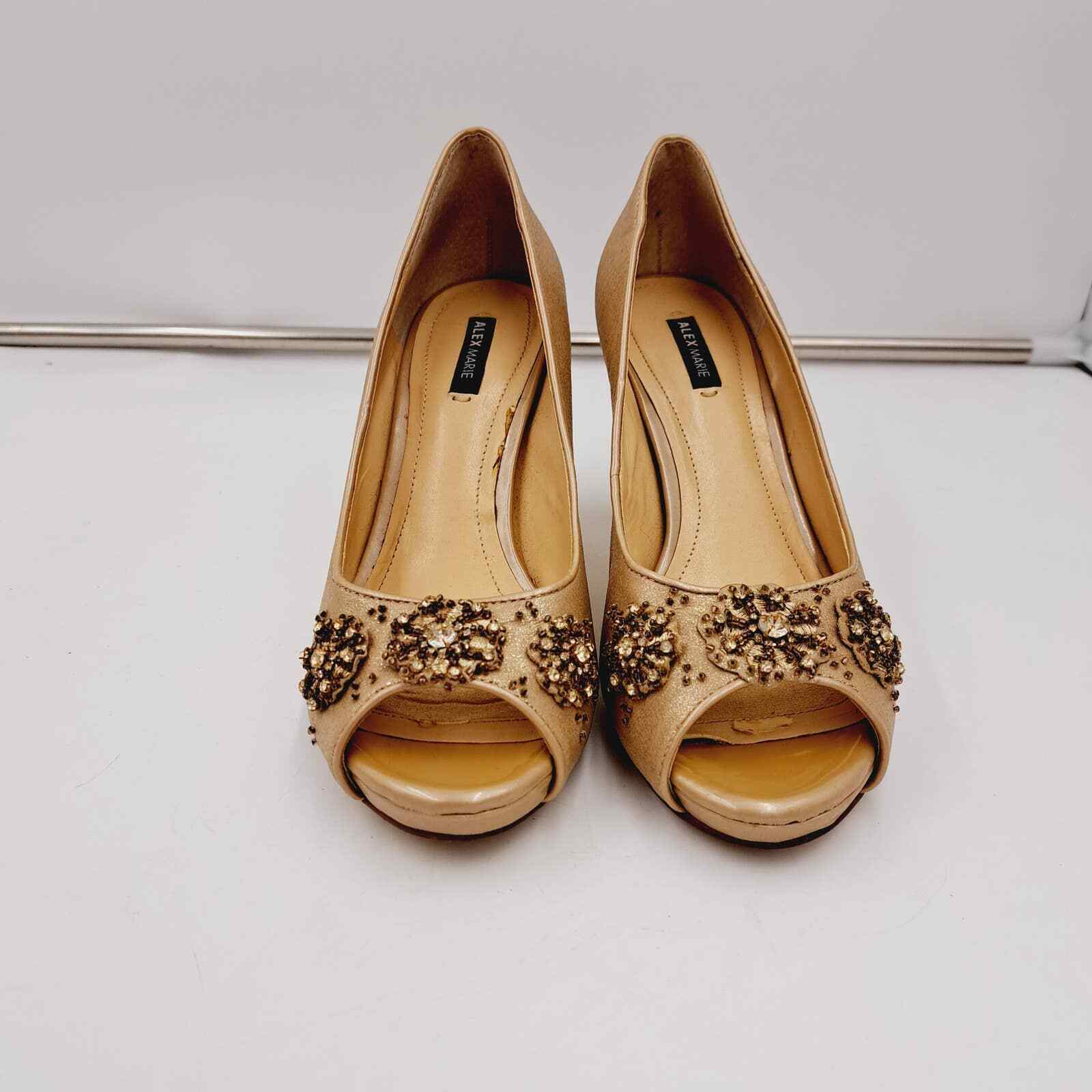 Alex Marie Goldtone Shimmer Jeweled Peep Toe Heel 7