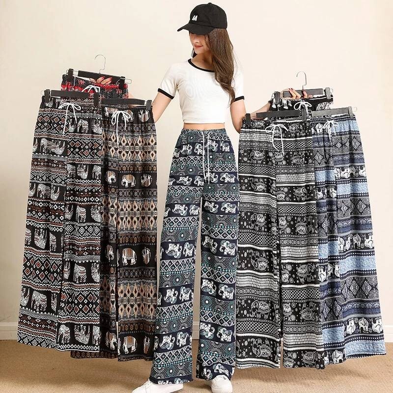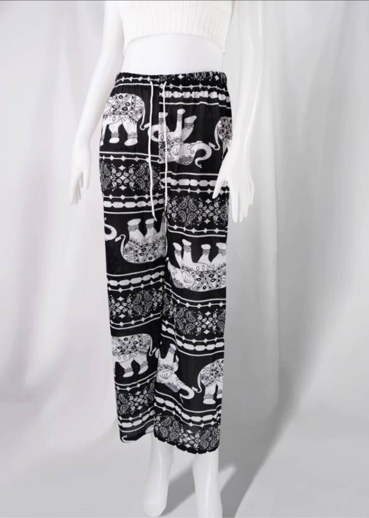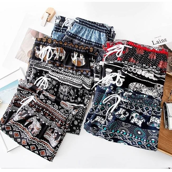 Trousers Elephant Thai Ladies Pants Light Comfortable Beautiful Freesize:Black1