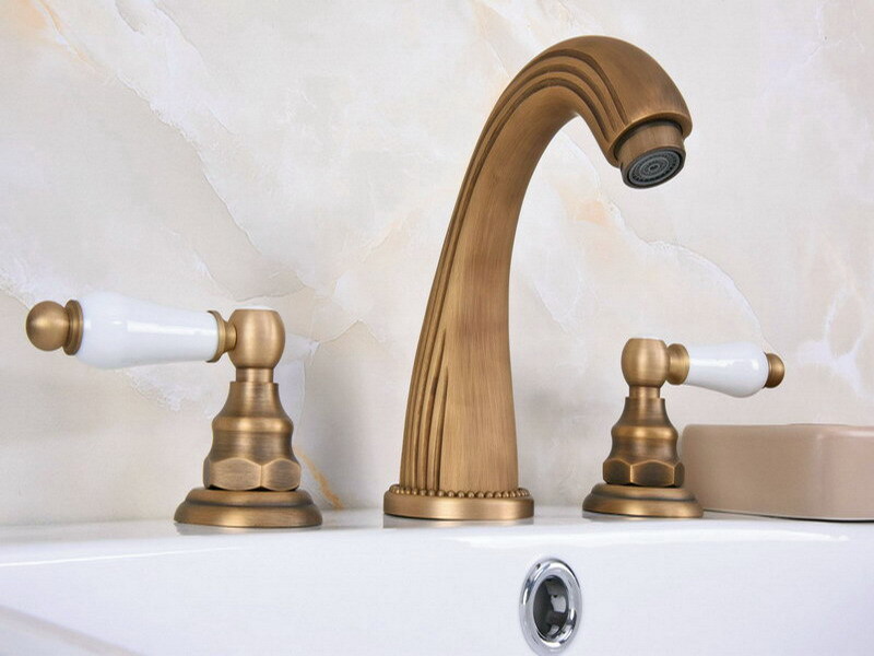 как выглядит Antique Brass Deck Mounted Widespread Bathroom 3 Holes Faucet Water Taps fan070 фото