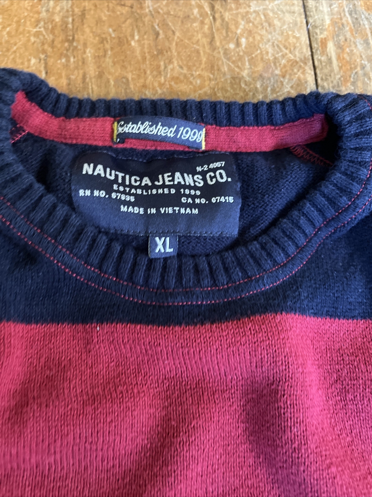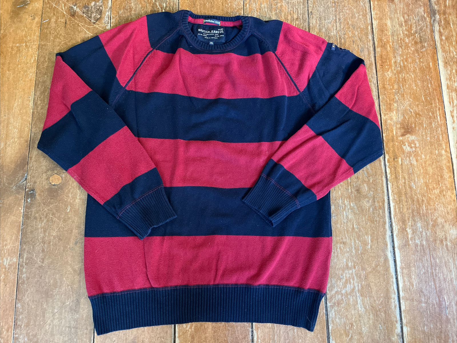 Mens sweater NAUTICA size XL long sleeve striped pullover Red Navy