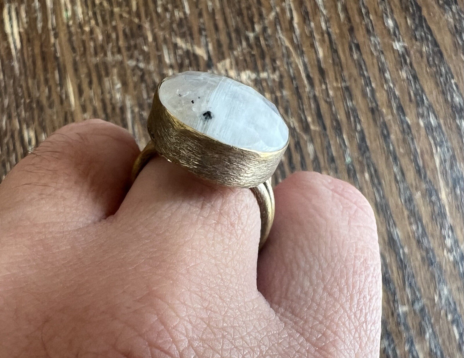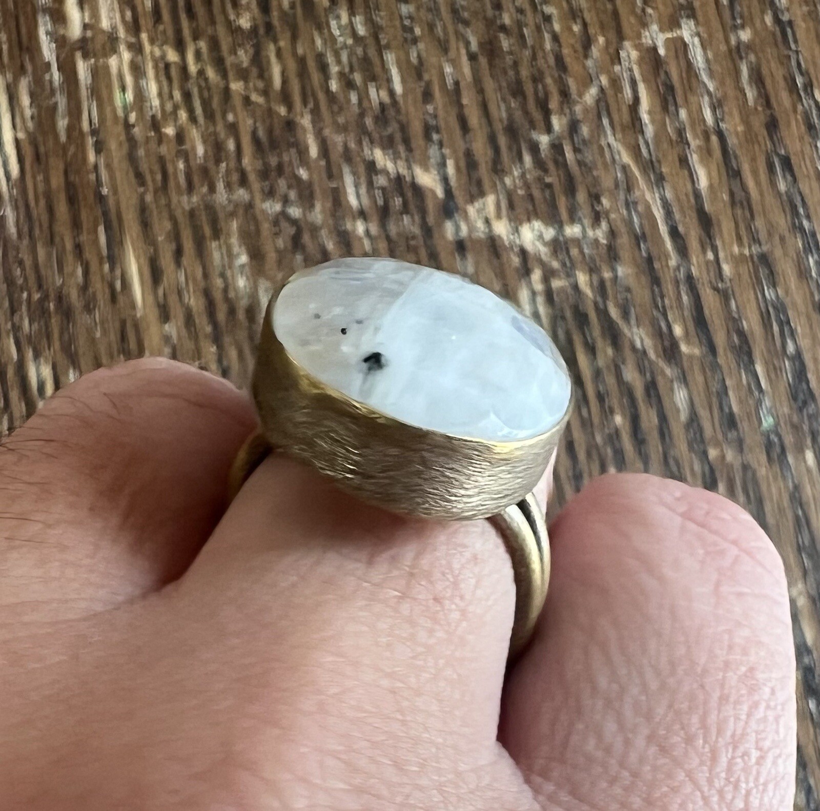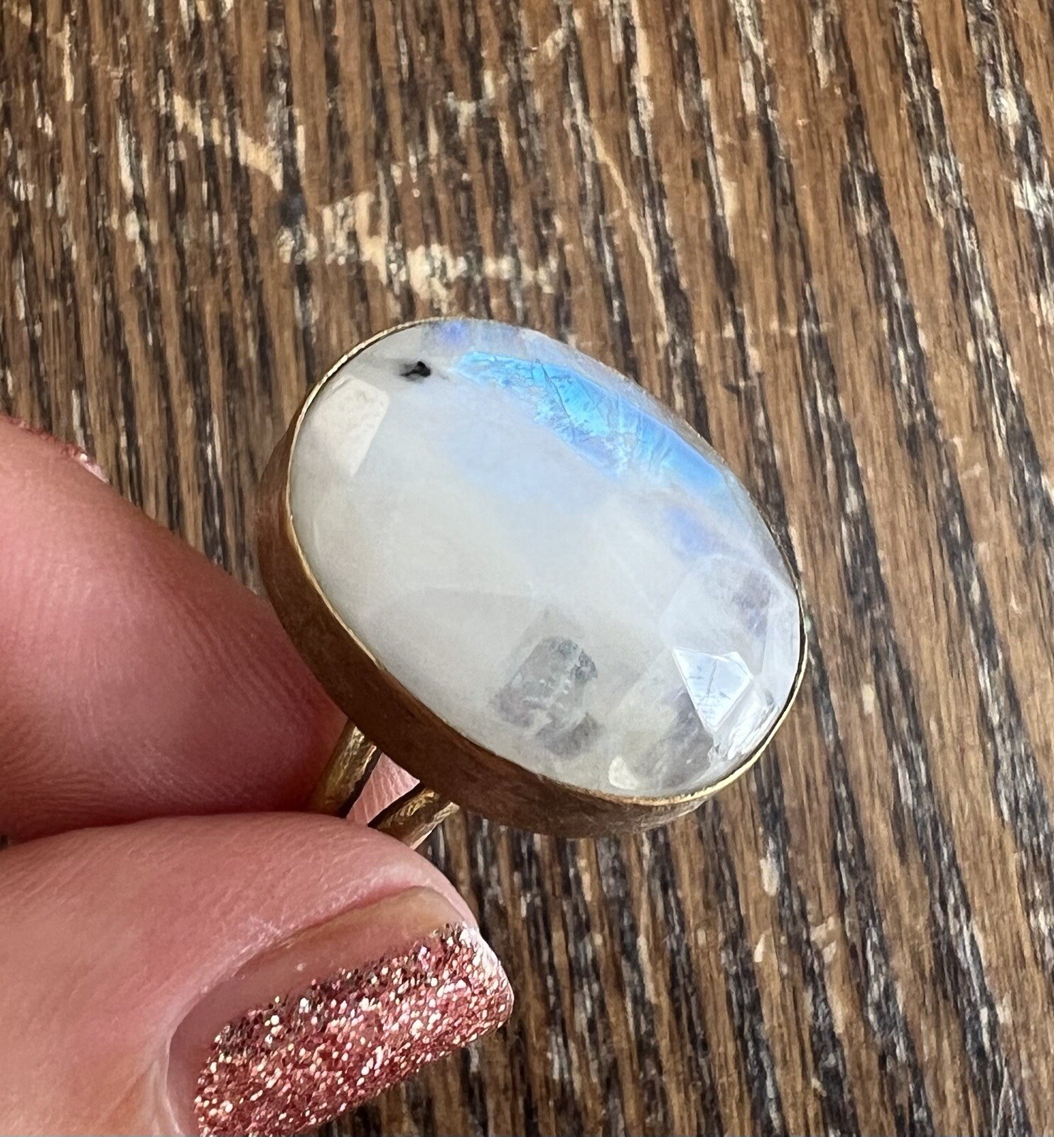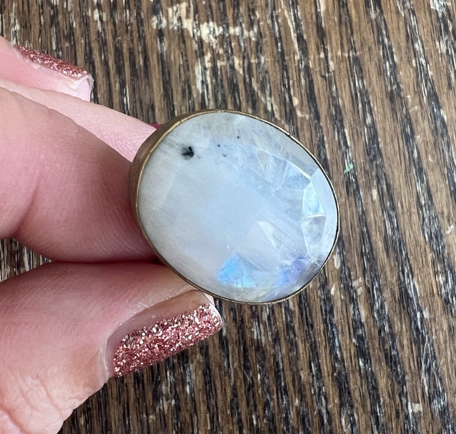 как выглядит Brass Metal Faceted Rainbow Moonstone Oval Stone Ring Adjustable фото