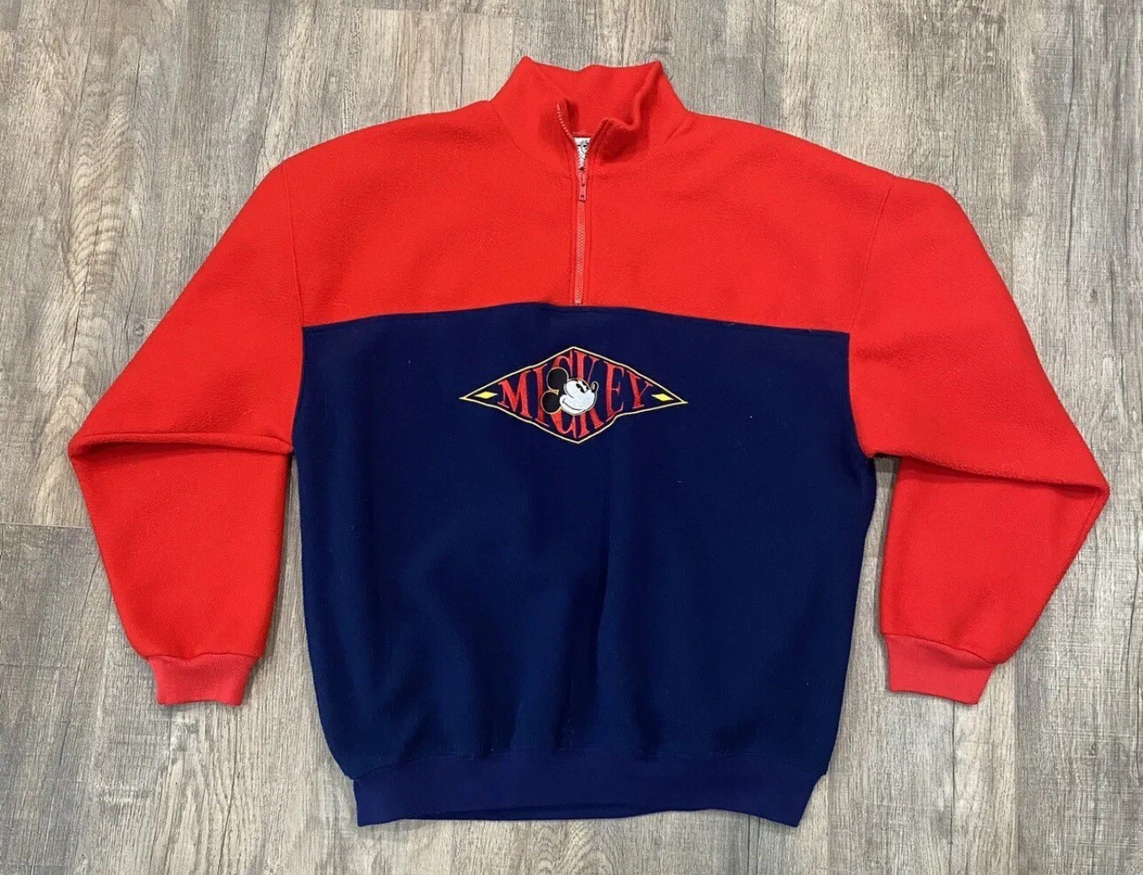 • Vintage Disney Mens Fleece Pullover Mickey Co Fleece 1/4 Zip Jacket Size XL