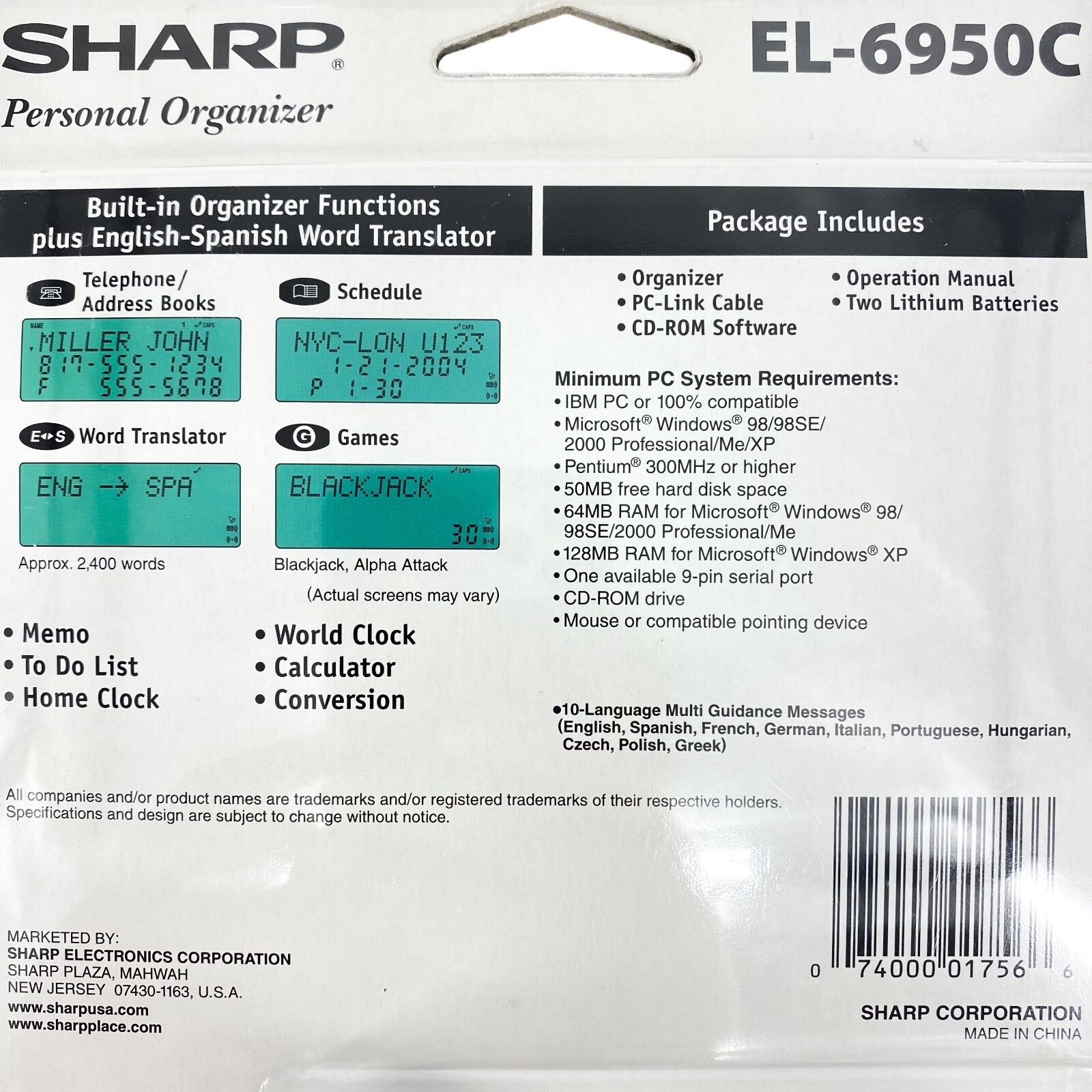 SHARP Personal Organizer English Spanish Translator 512KB Memory EL-6950C NEW