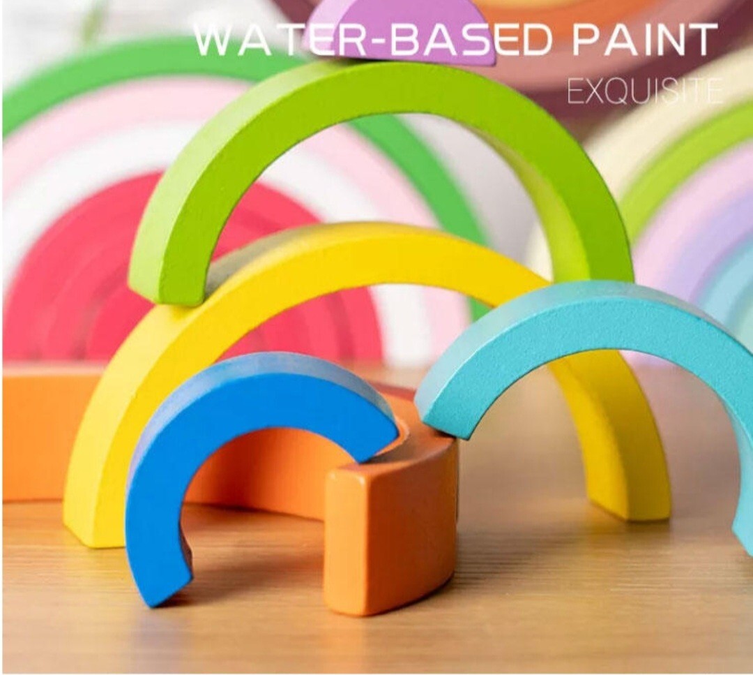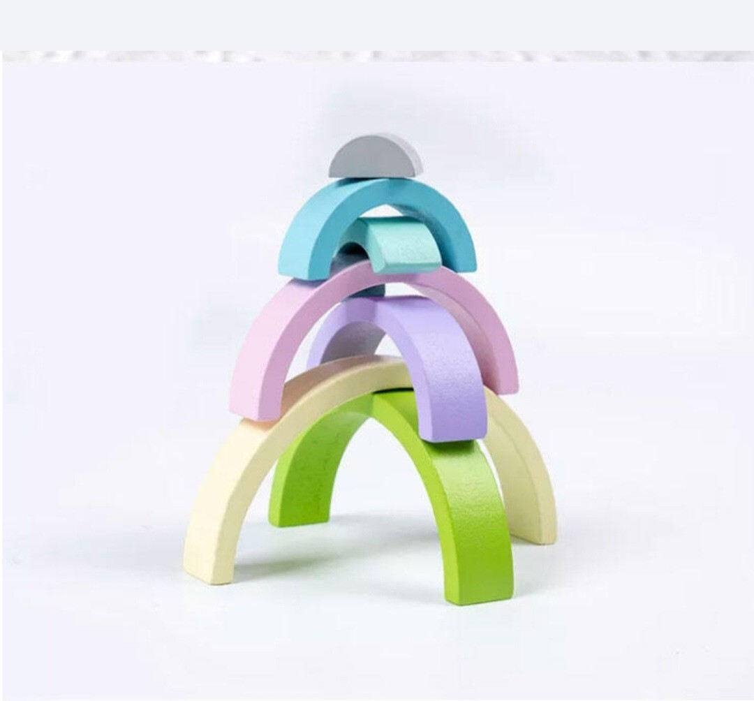 wooden rainbow stacker Color, Macaroon learning puzzle educational montessori