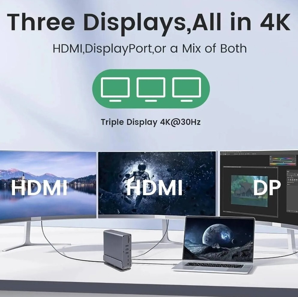 16-in-1 USB C Docking Station 100W, Triple Display, Multi Port