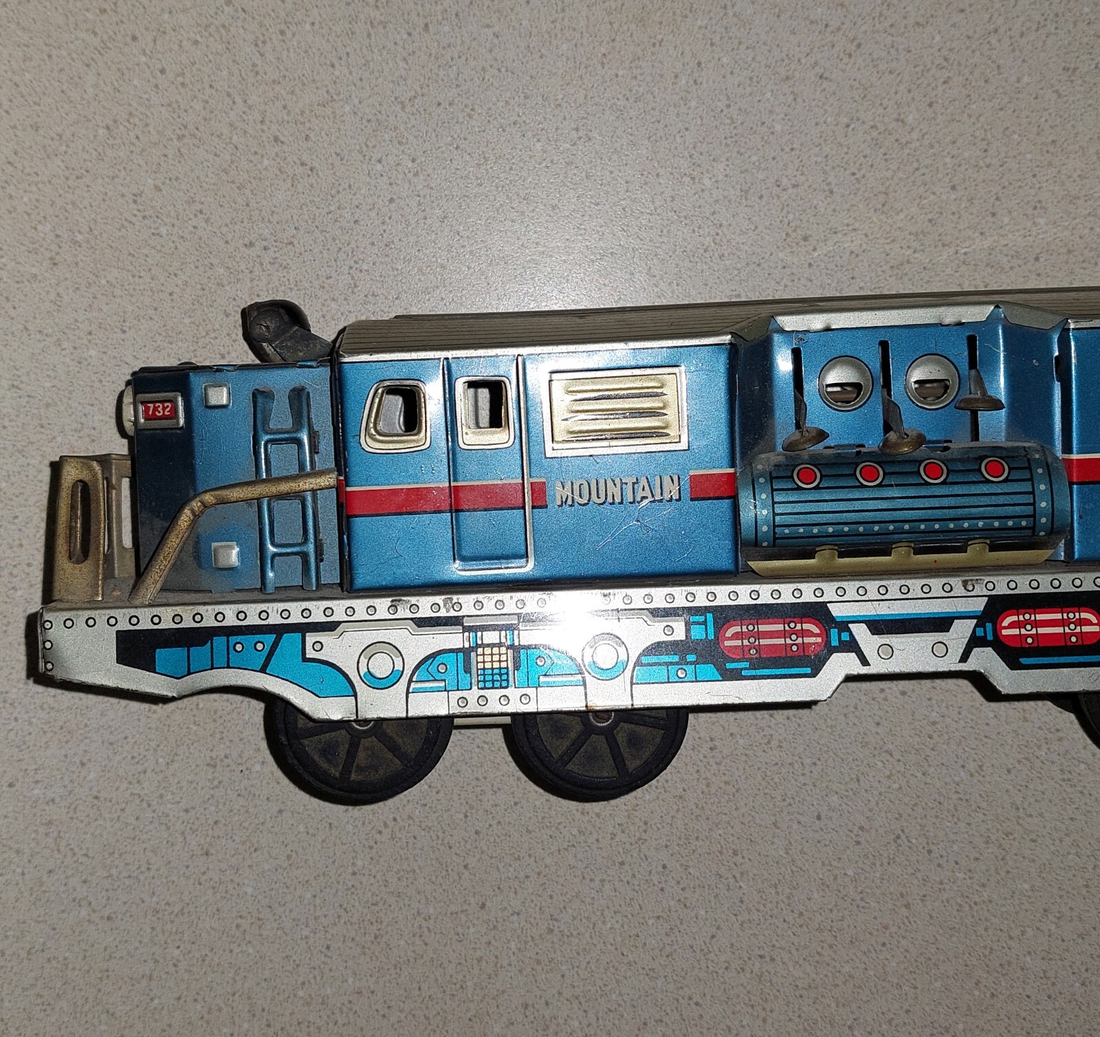 Vintage TIN Mechanical Friction Toy TRAIN Mountain Express WORKING 60's LITHO