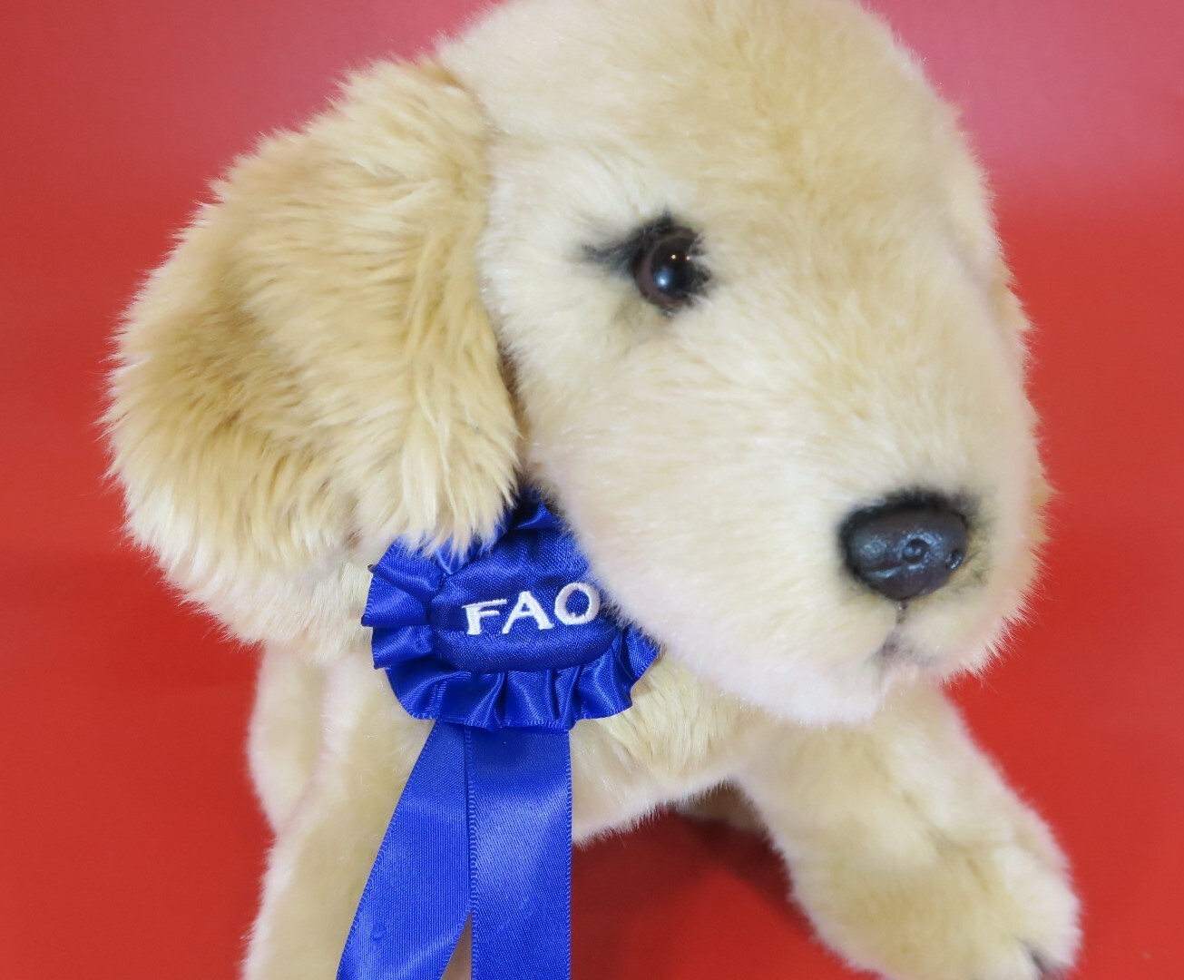 FAO Schwarz RETRIEVER DOG Plush Stuffed Puppy Toys R Us GSD Blue Ribbon