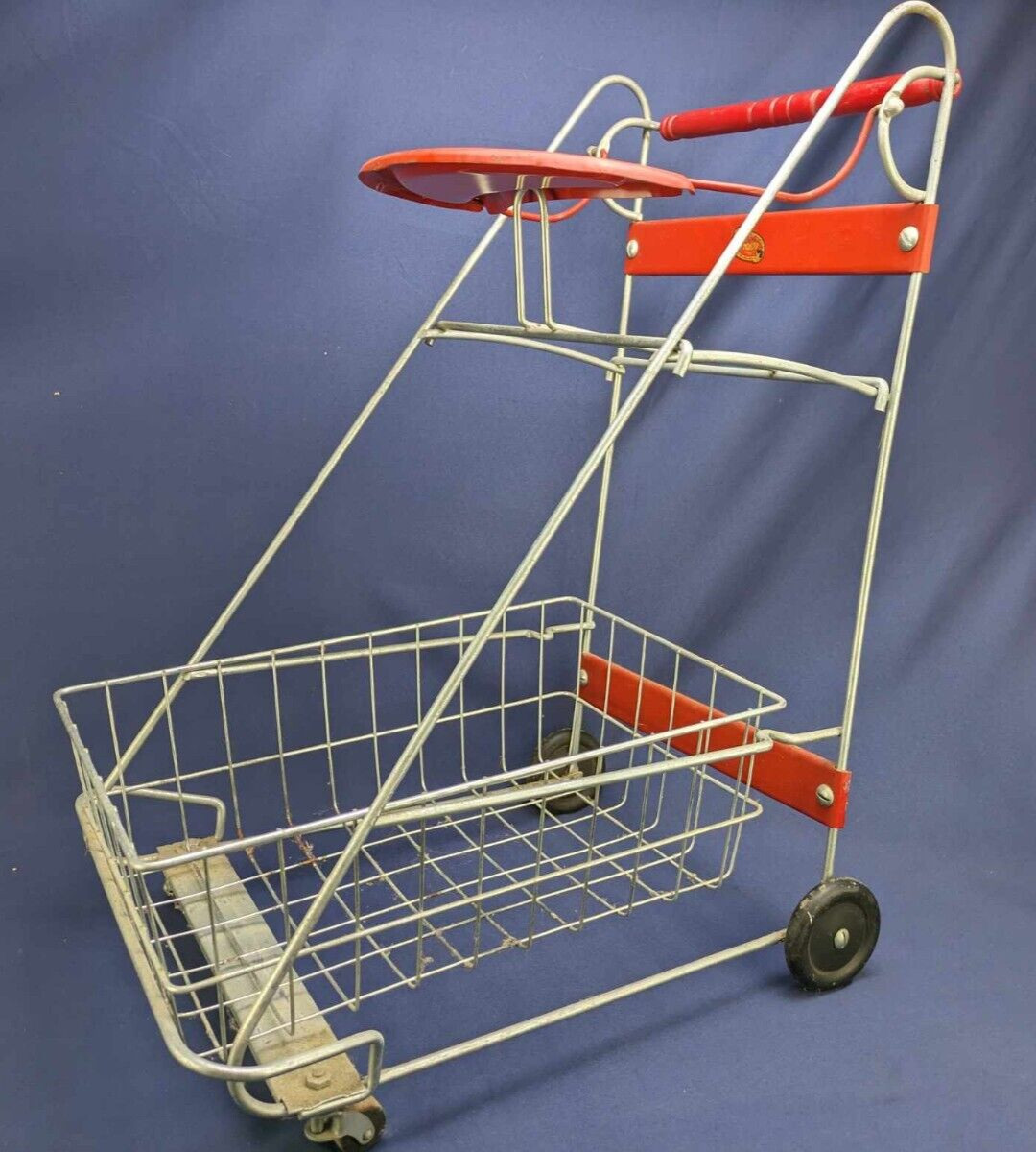 VINTAGE METAL SHOPPING CART DOLL-E-TOYS 23 1/2 TALL AMACO TOYS CHILD S 1950 MCM
