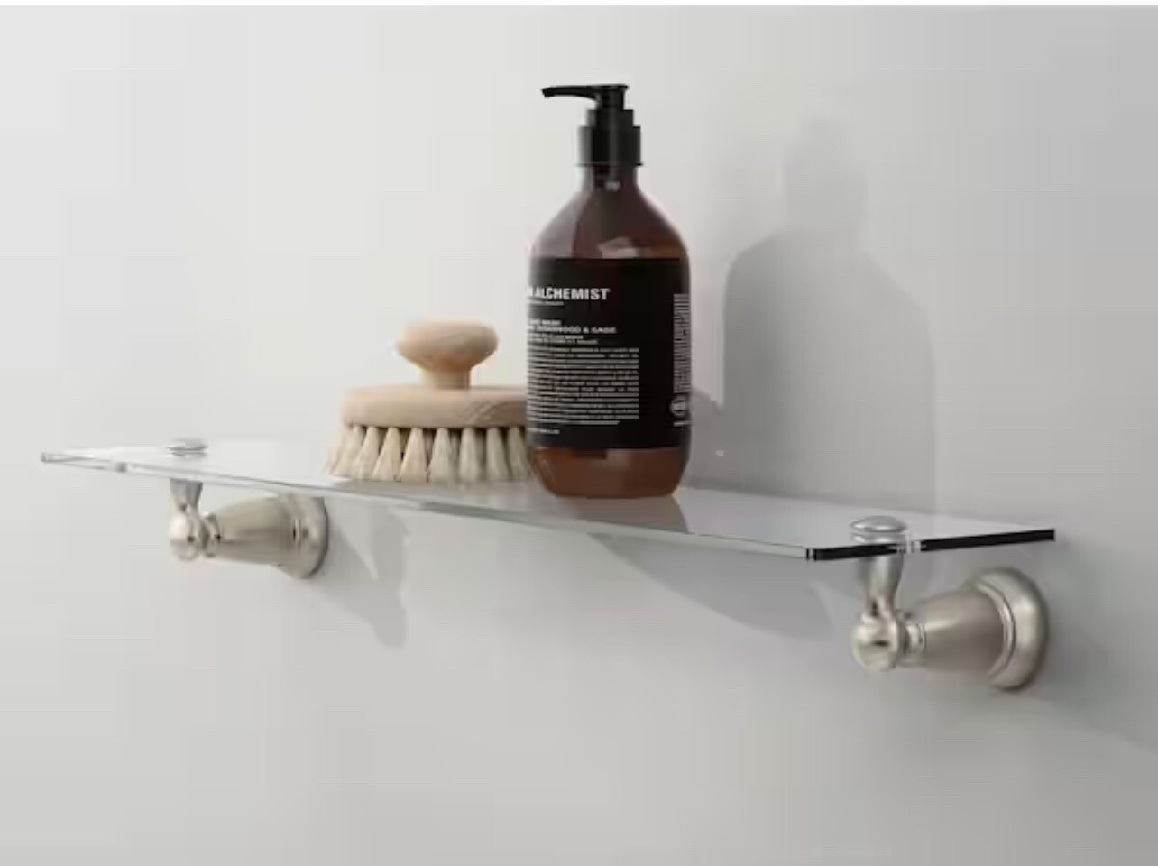 как выглядит Moen Banbury Brushed Nickel Glass Shelf 23x6x3 Dimensions фото