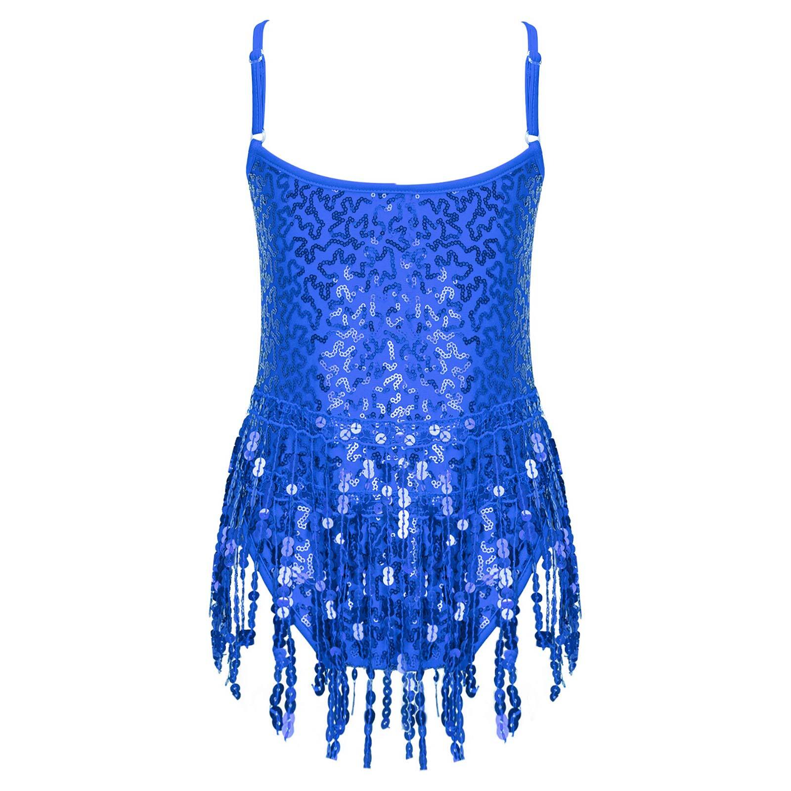 Kids Girls Sequin Tassel Latin Dance Dress Jazz Tango Rumba Costume Dancewear
