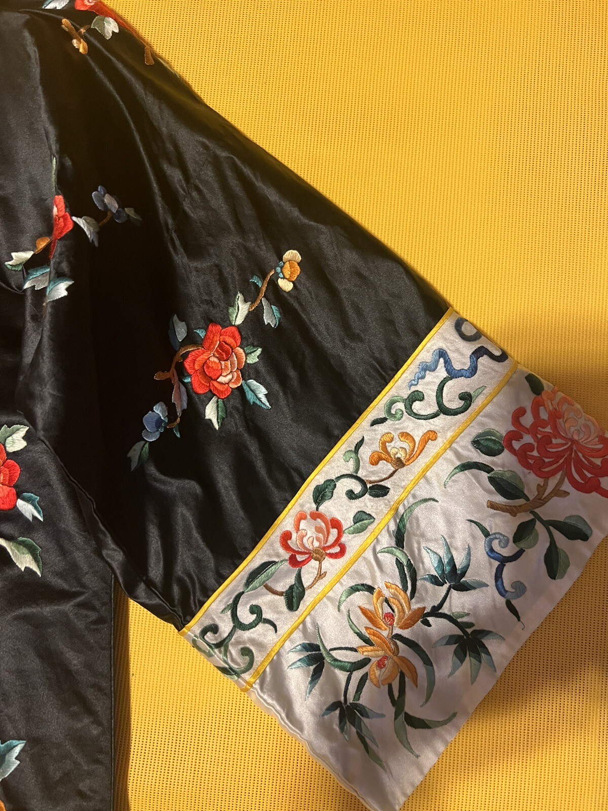 как выглядит Vintage 1950s Black Silk Handmade Embroidered Japanese Kimono Robe Medium фото