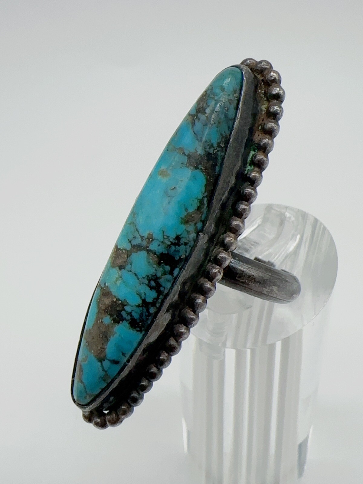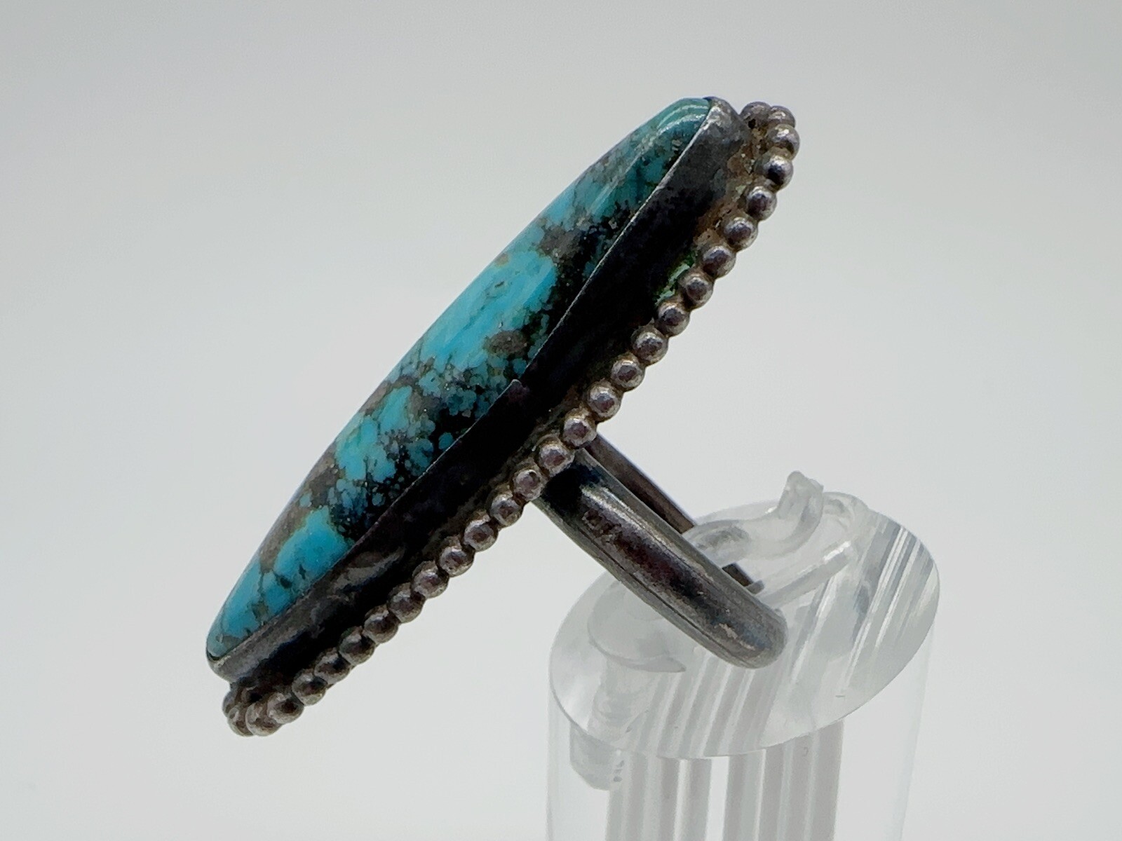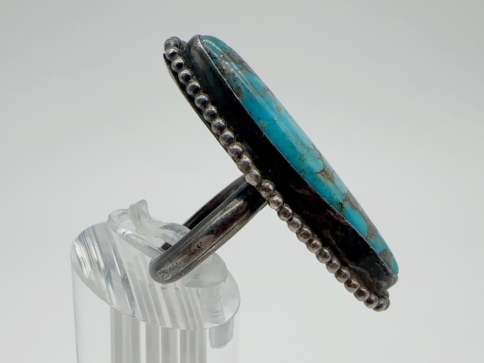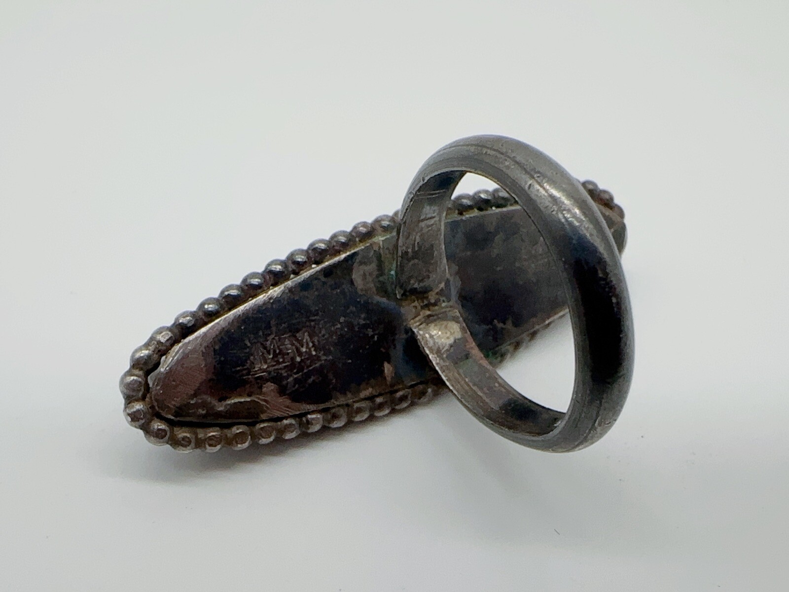 VTG Signed MM Native American Sterling Silver Turquoise Sz-8 Ring 14.9g g50