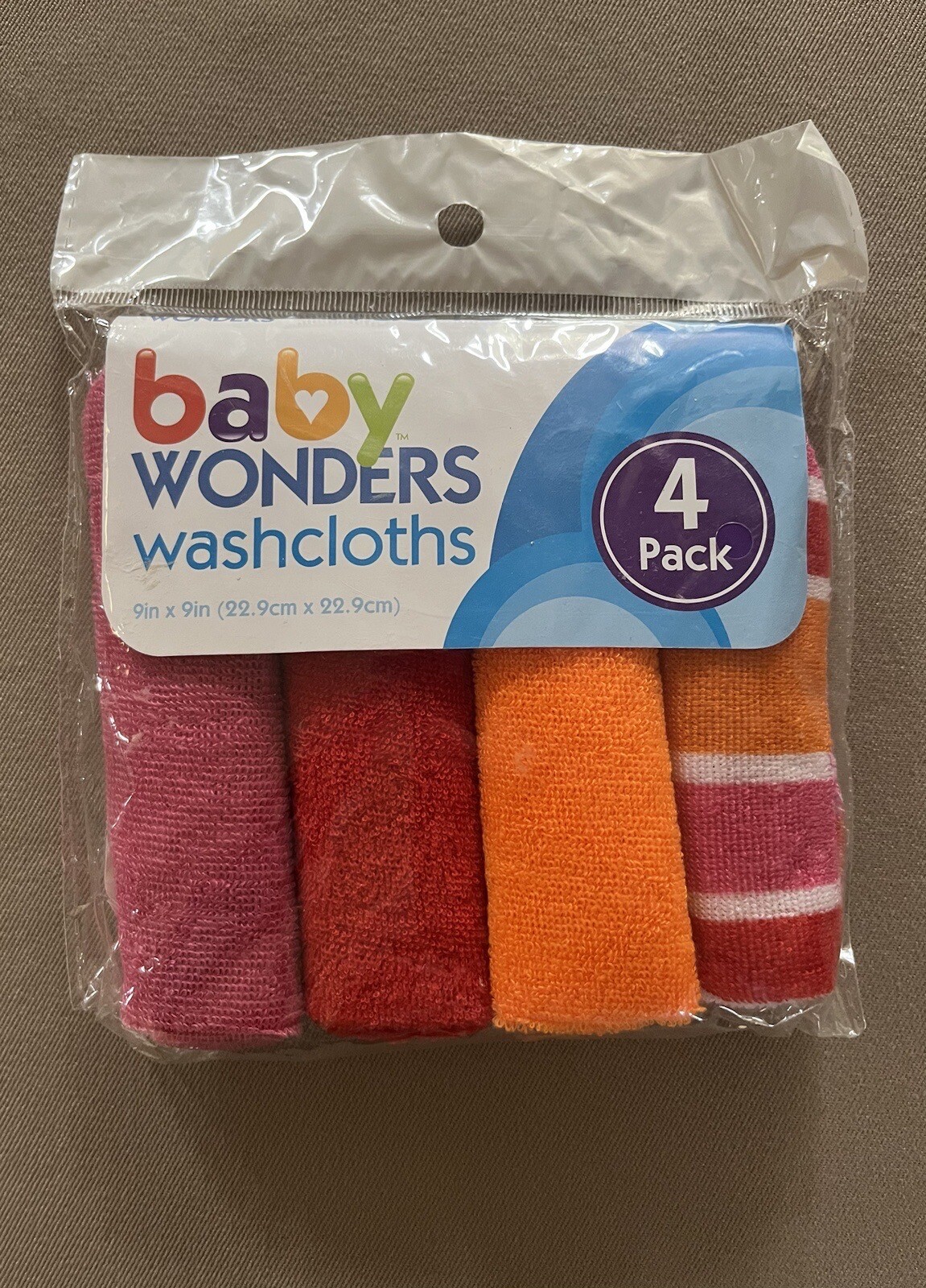 4 Pack Baby Wonders Baby Washcloths Pink, Red, Orange Striped New In Package