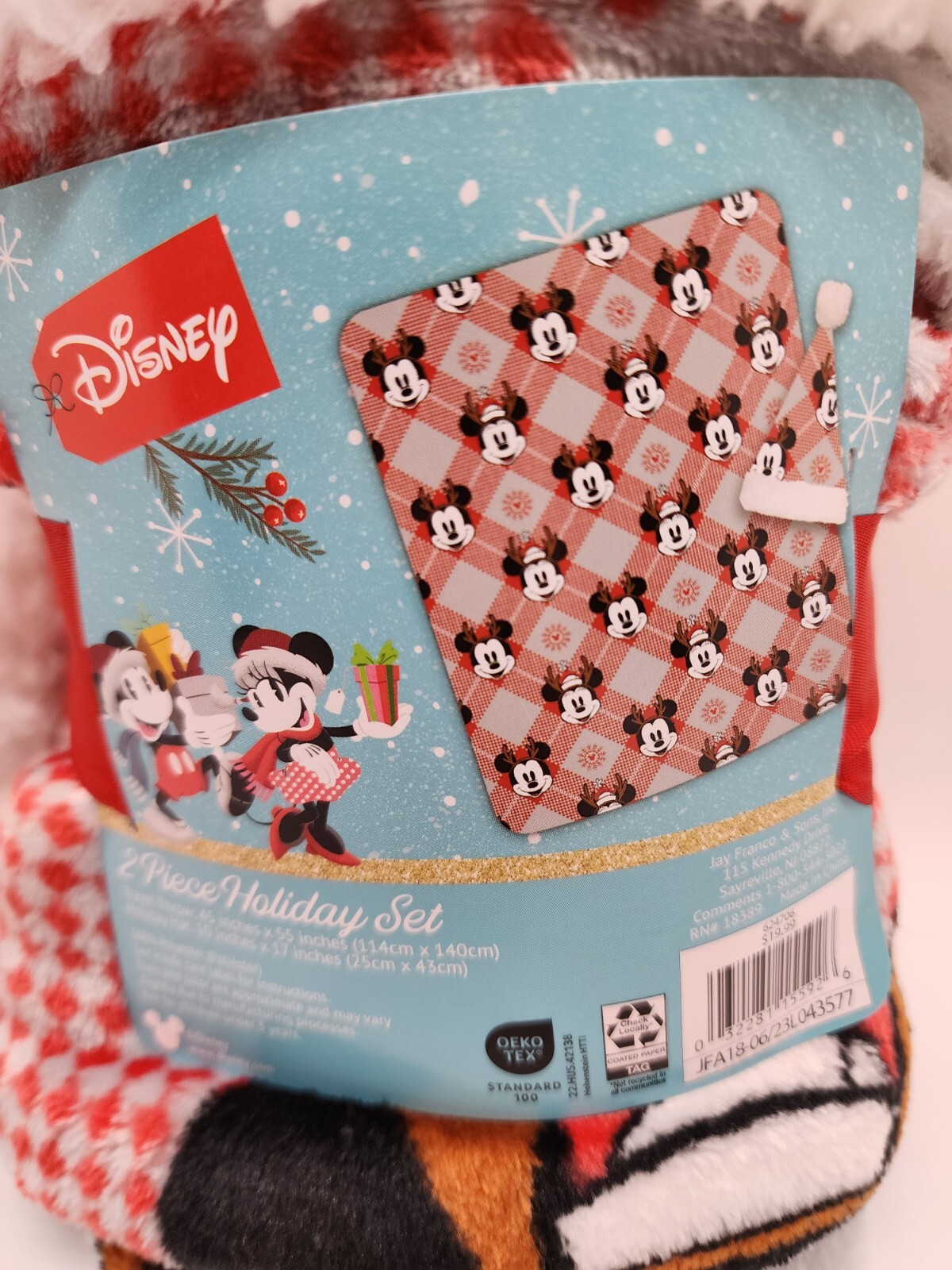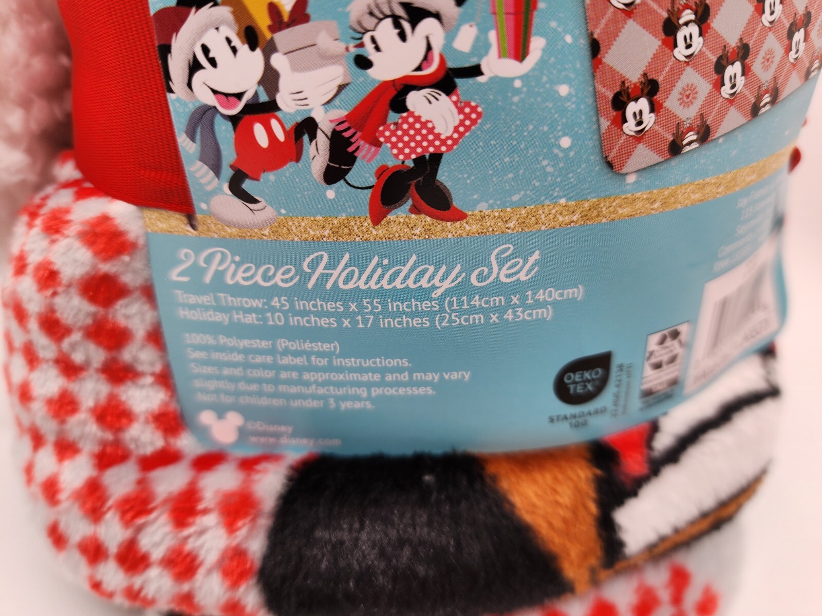 • Brand New Mickey Mouse Disney 2 Piece Holiday Set Travel Throw Hat New