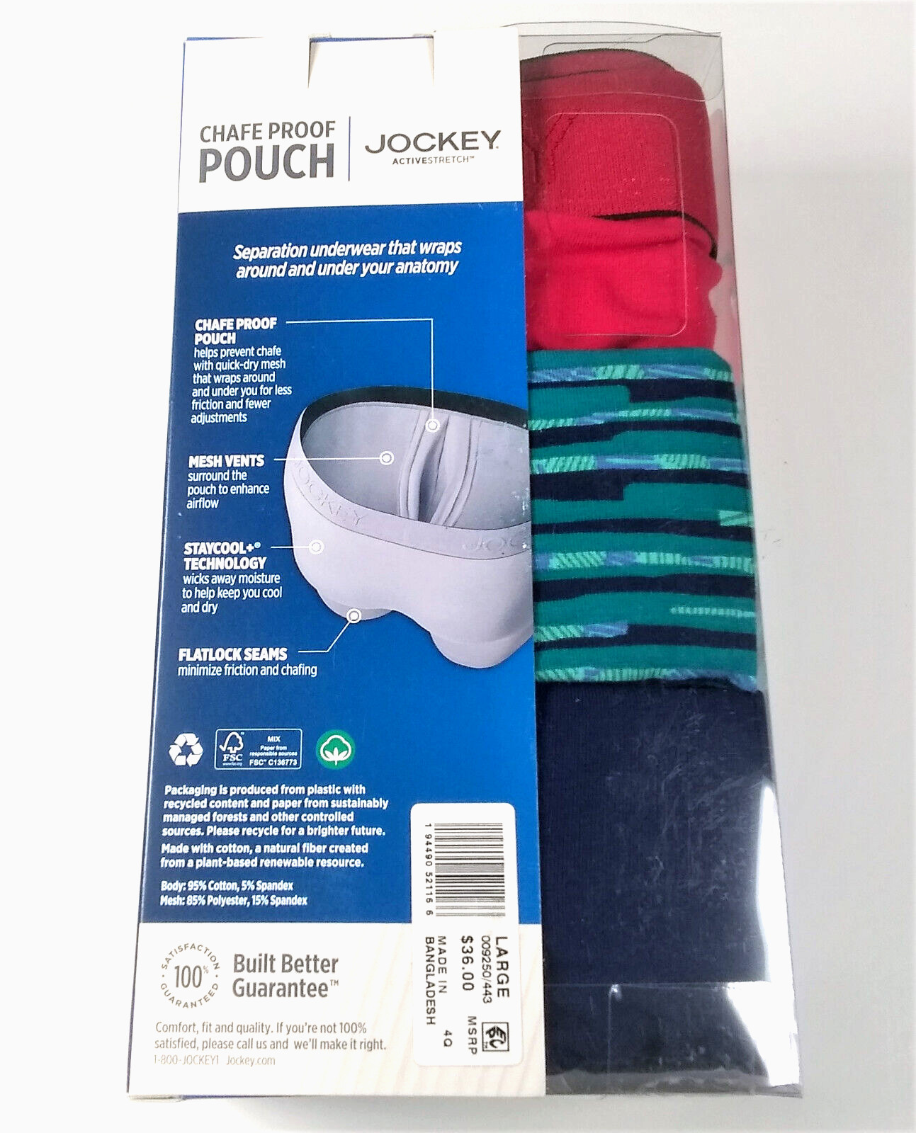 Jockey Mens Boxer Briefs LARGE Active Chafe Proof Pouch Cotton Stretch 3 pk New