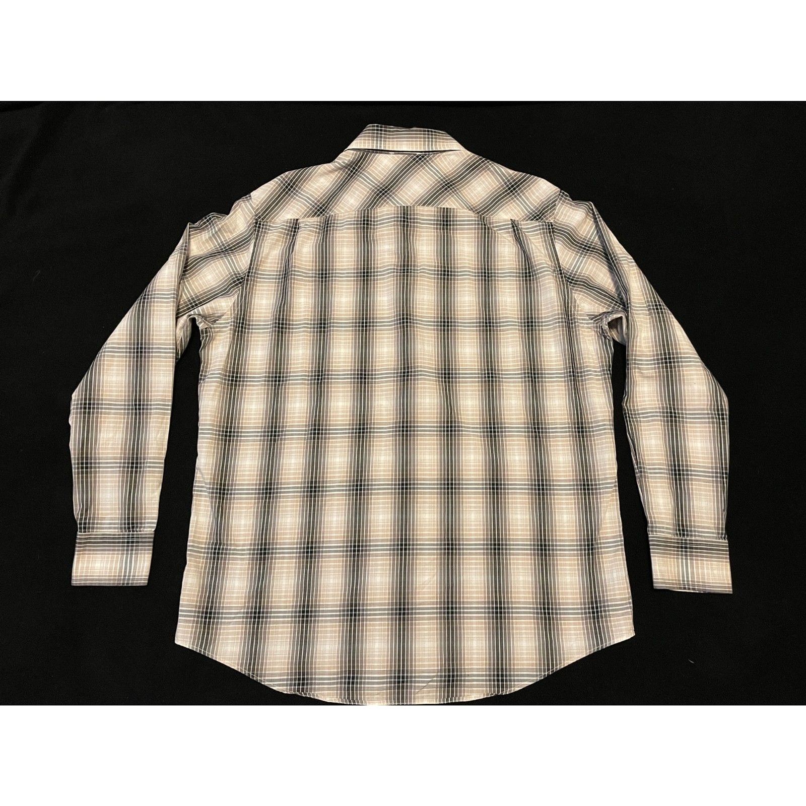 Banana Republic Men's L/S Button Down Tan Black White Plaid Size L 16-16 1/2
