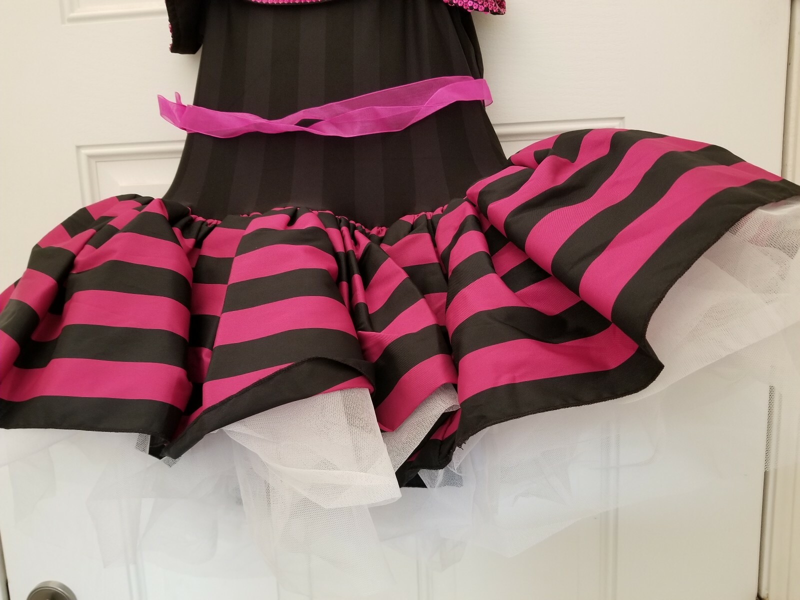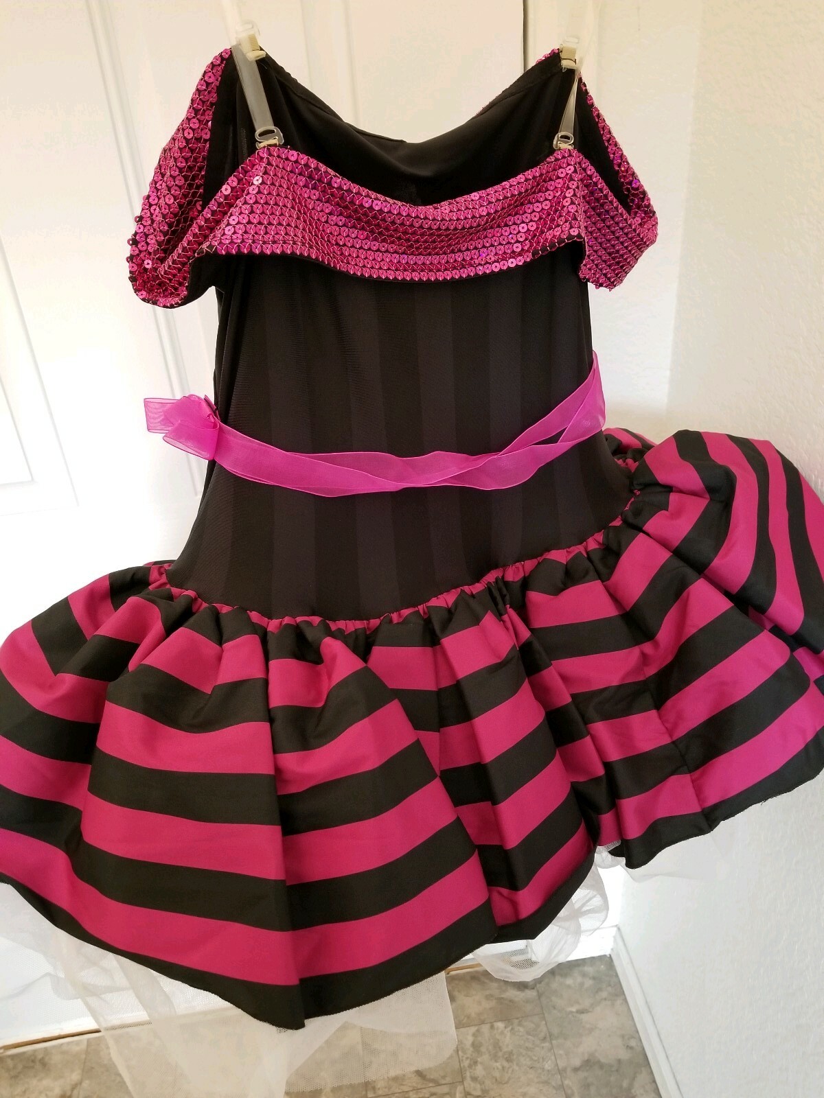 как выглядит REVOLUTION DANCEWEAR Costume MIDNIGHT IN PARIS Layered Sequin DRESS Pink/Blk MA фото
