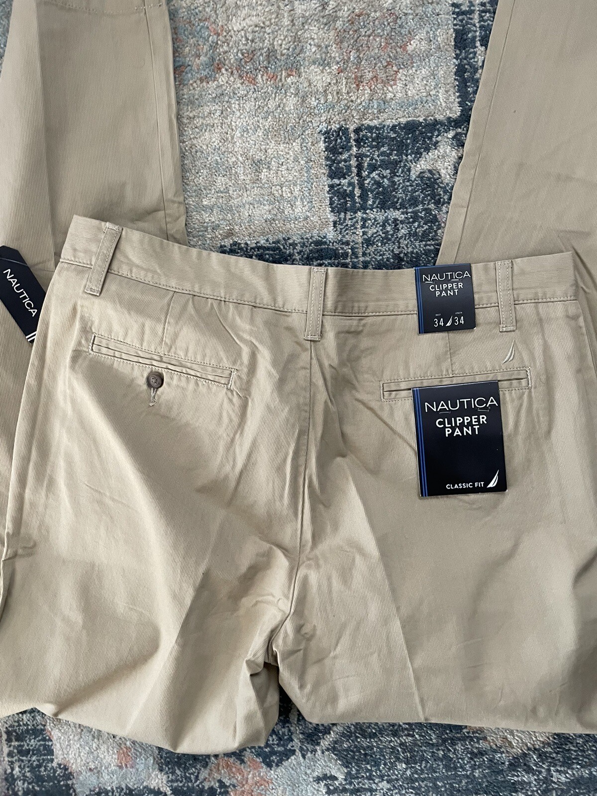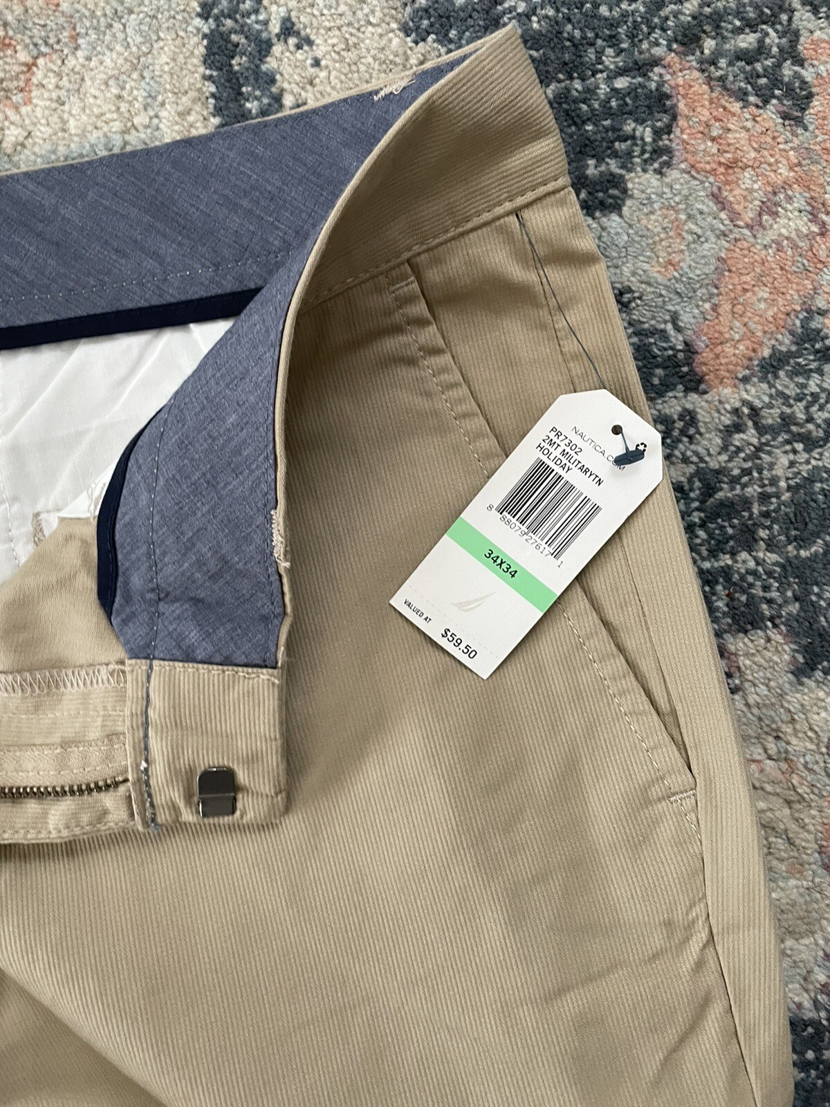 как выглядит New Nautica PR7302 Clipper Cotton Classic Fit Pants Mens W34 L34 Militarytn фото