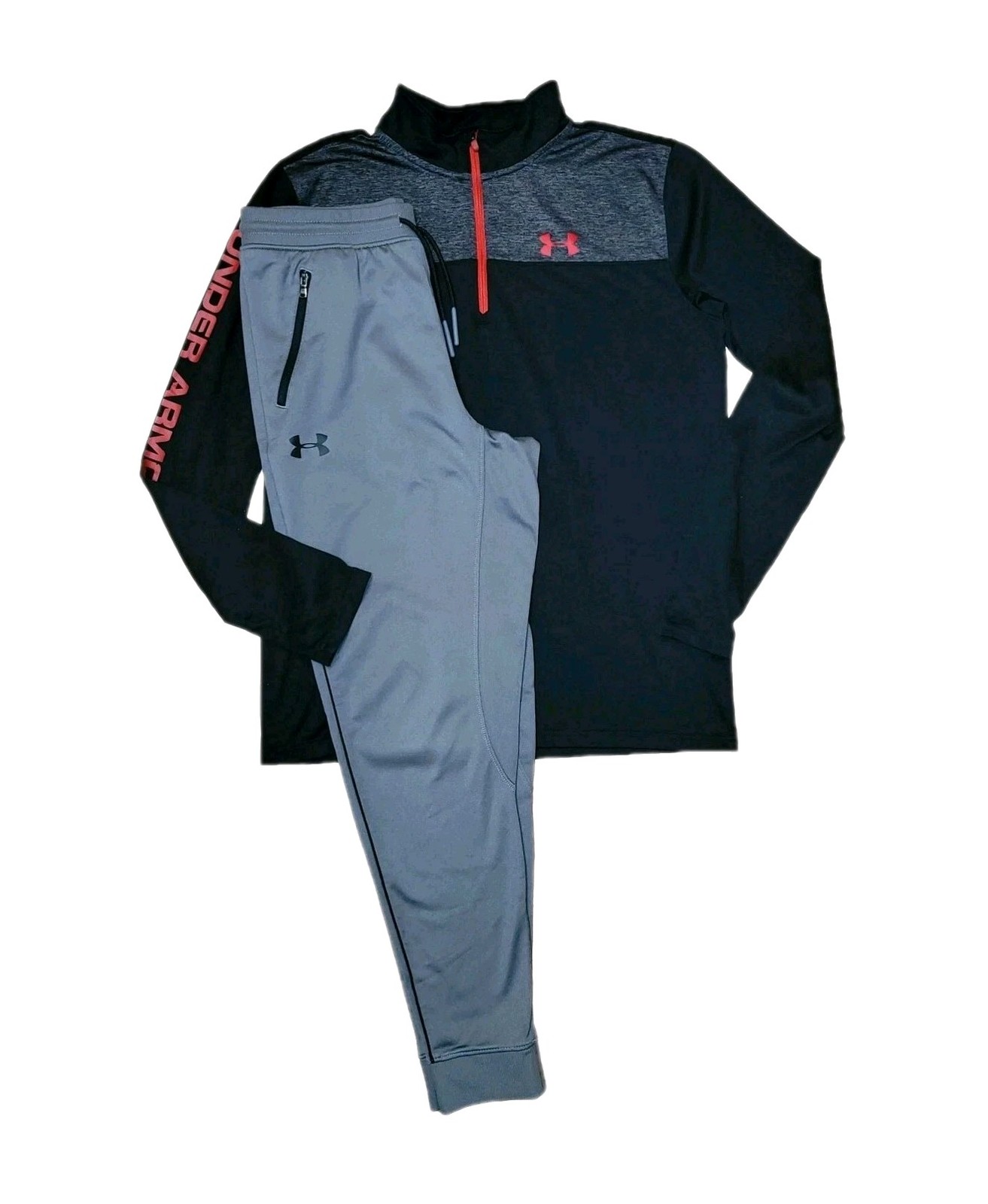 Under Armour Youth XL Gray Joggers 1/4 Zip Black/Red Pullover Outfit