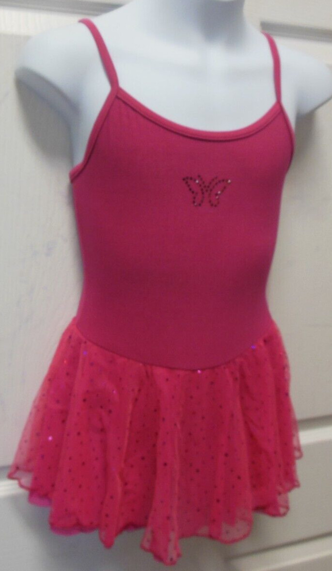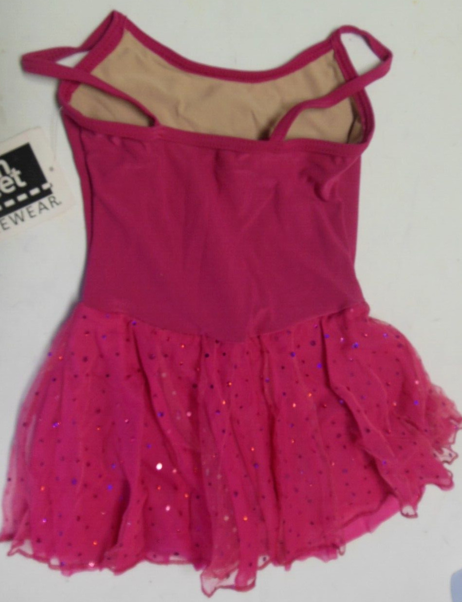 Medium Child Rasberry glitter skirted dance leotard Camisole styling rhinestones