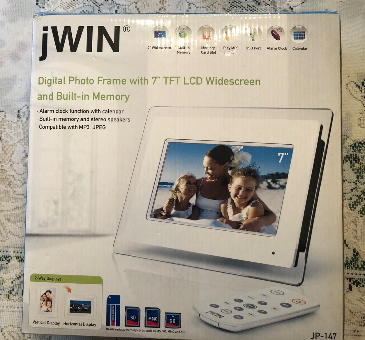 jWIN JP147 7-Inch LCD Digital Picture Frame With Built in Memory White