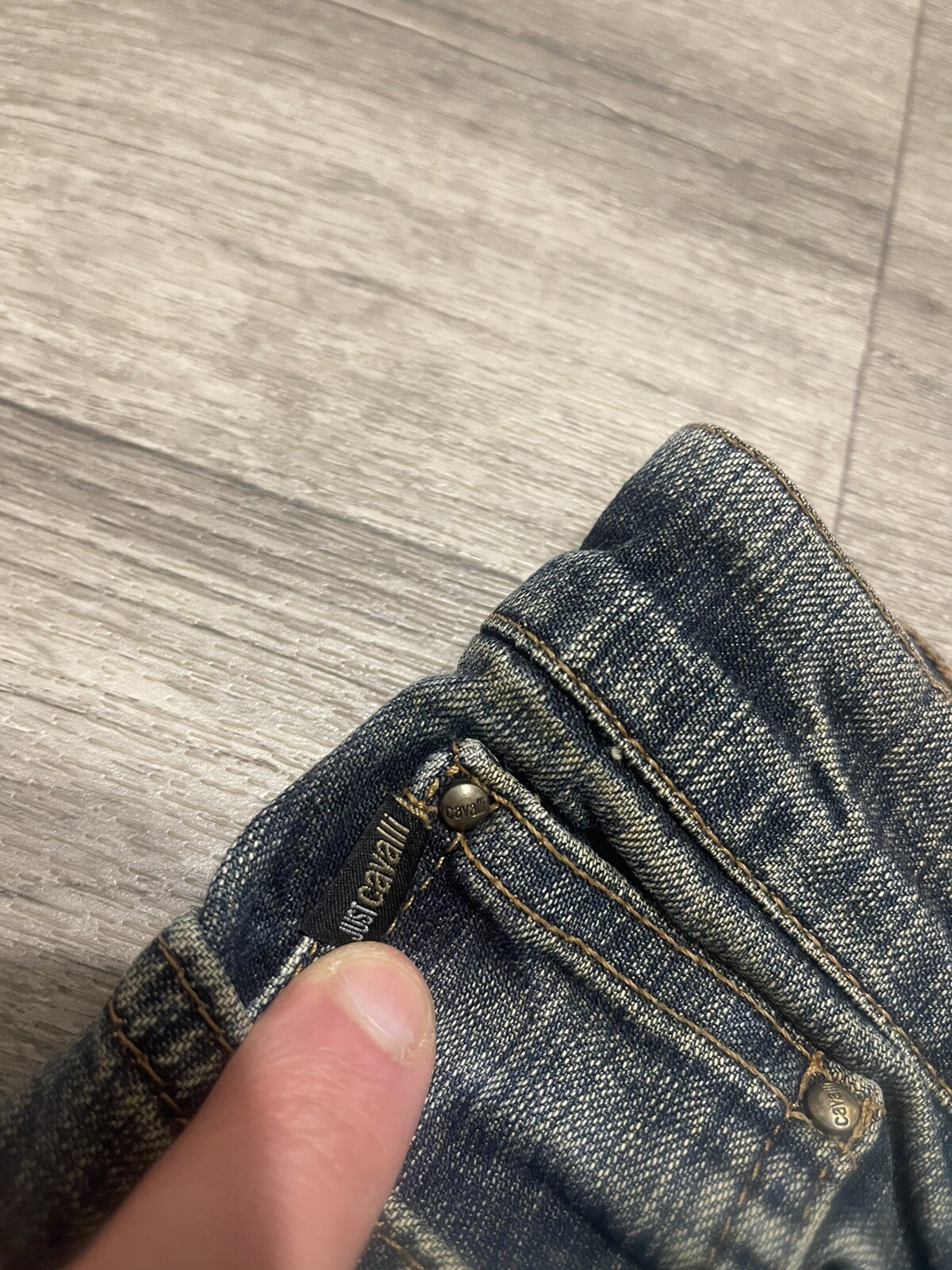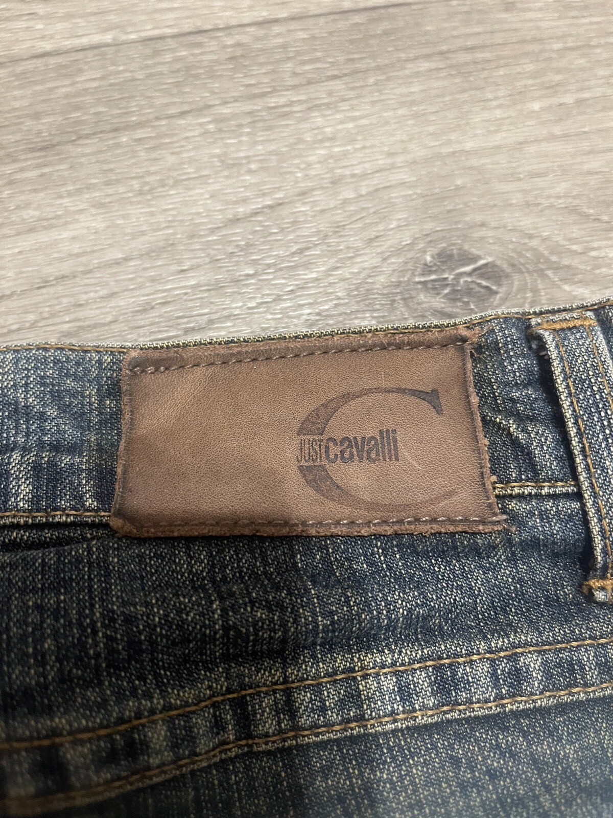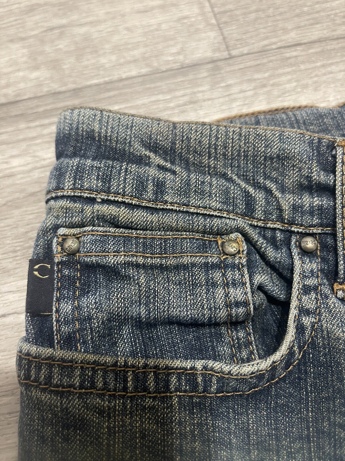 как выглядит JUST CAVALLI VINTAGE Y2K STYLE DIRTY DENIM STRAIGHT JEANS SIZE 29 фото