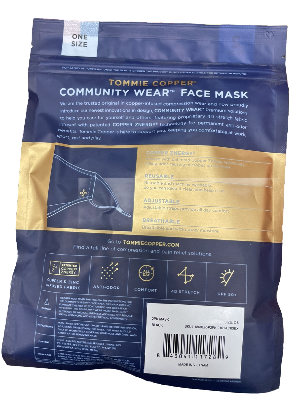 как выглядит Tommie Copper Face Masks Covering Unisex 2-Pack Adjustable Moisture Wicking фото
