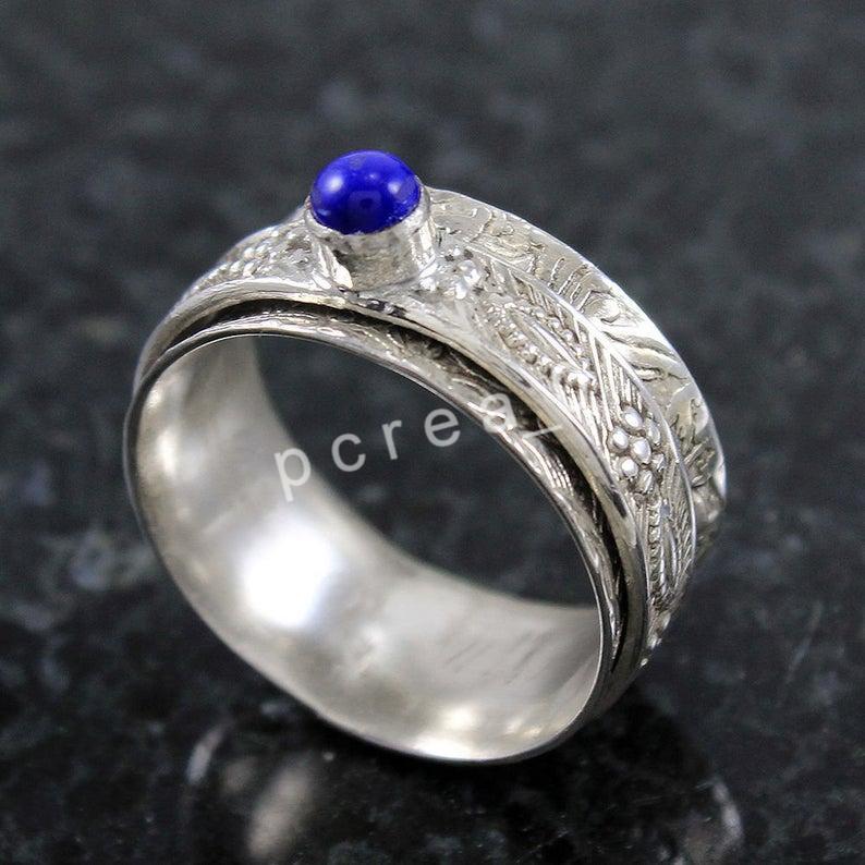 New Spinner ring, Lapis Gemstone ring Meditation ring, Fidget Spinner ring V22