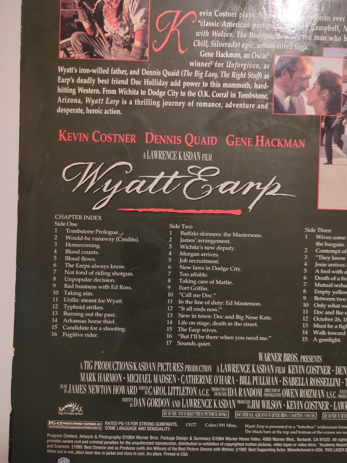 Wyatt Earp Laserdisc, 1994 Kevin Costner Dennis Quaid Gene Hackman Western