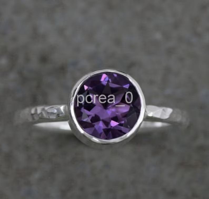 как выглядит Purple Amethyst Statement Ring, Sterling Silver Gemstone Ring, Hammered Ring T9 фото