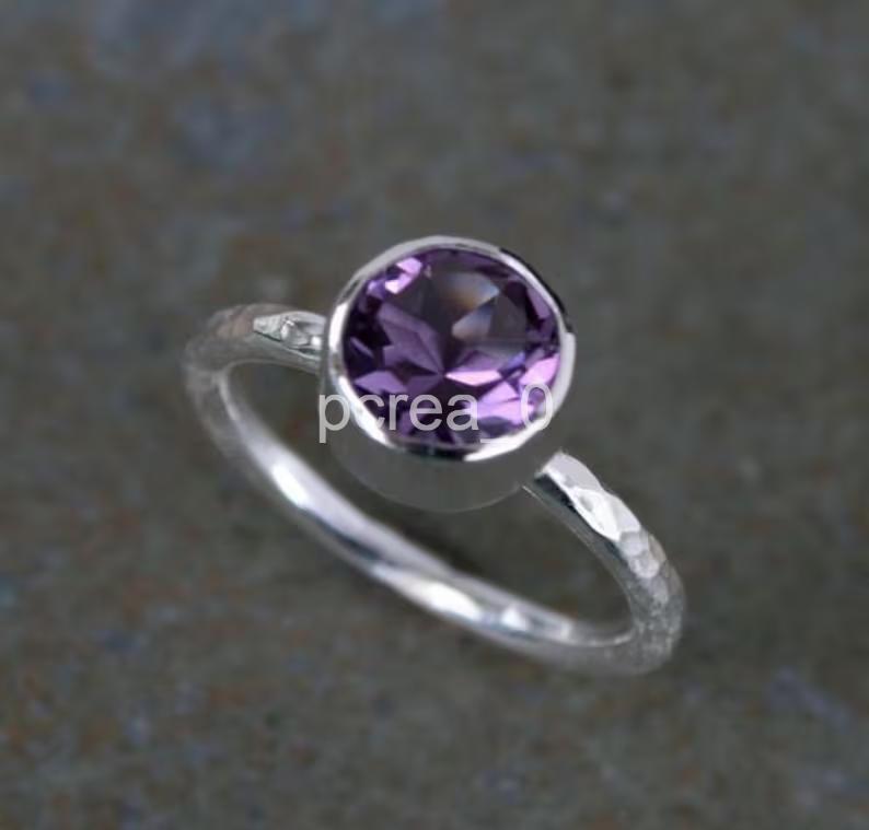 Purple Amethyst Statement Ring, Sterling Silver Gemstone Ring, Hammered Ring T9