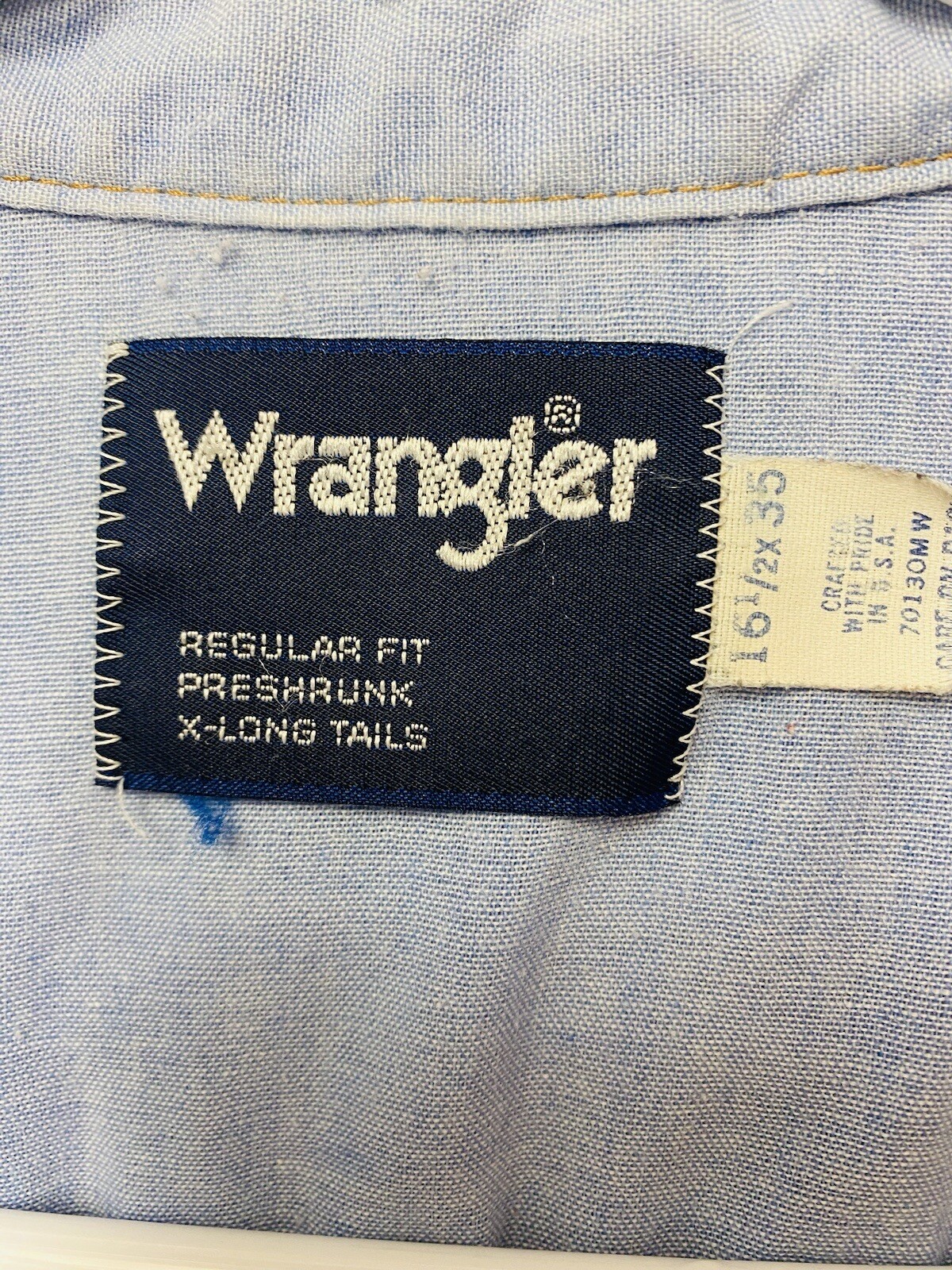Wrangler Regular Fit X-Long Tails Long Sleeve Pearl Snap Button Size 16 1/2x35