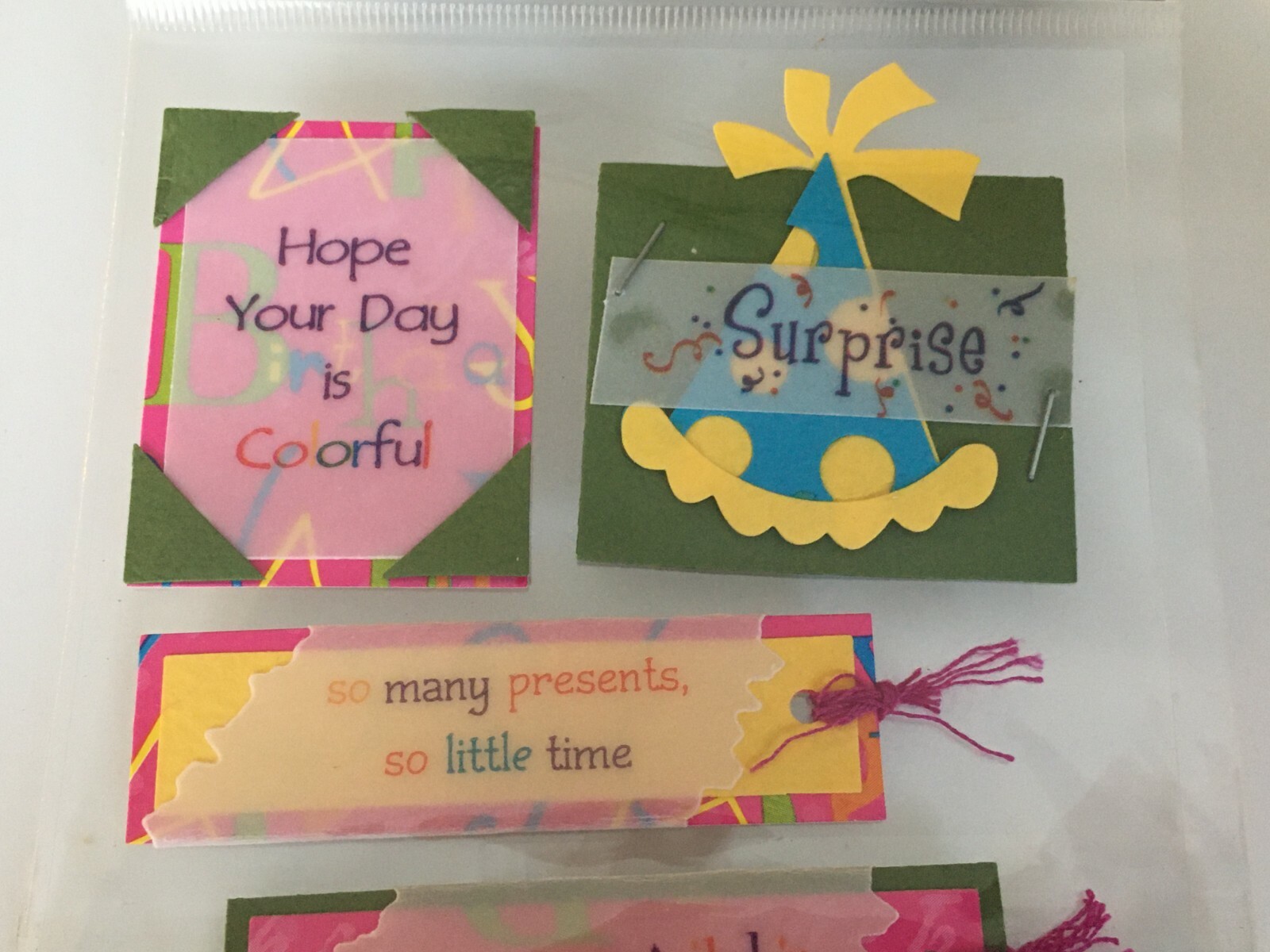 Miss Elizabeths Scrapbook Embellishments Small Set 4 Surprise Words Birthday