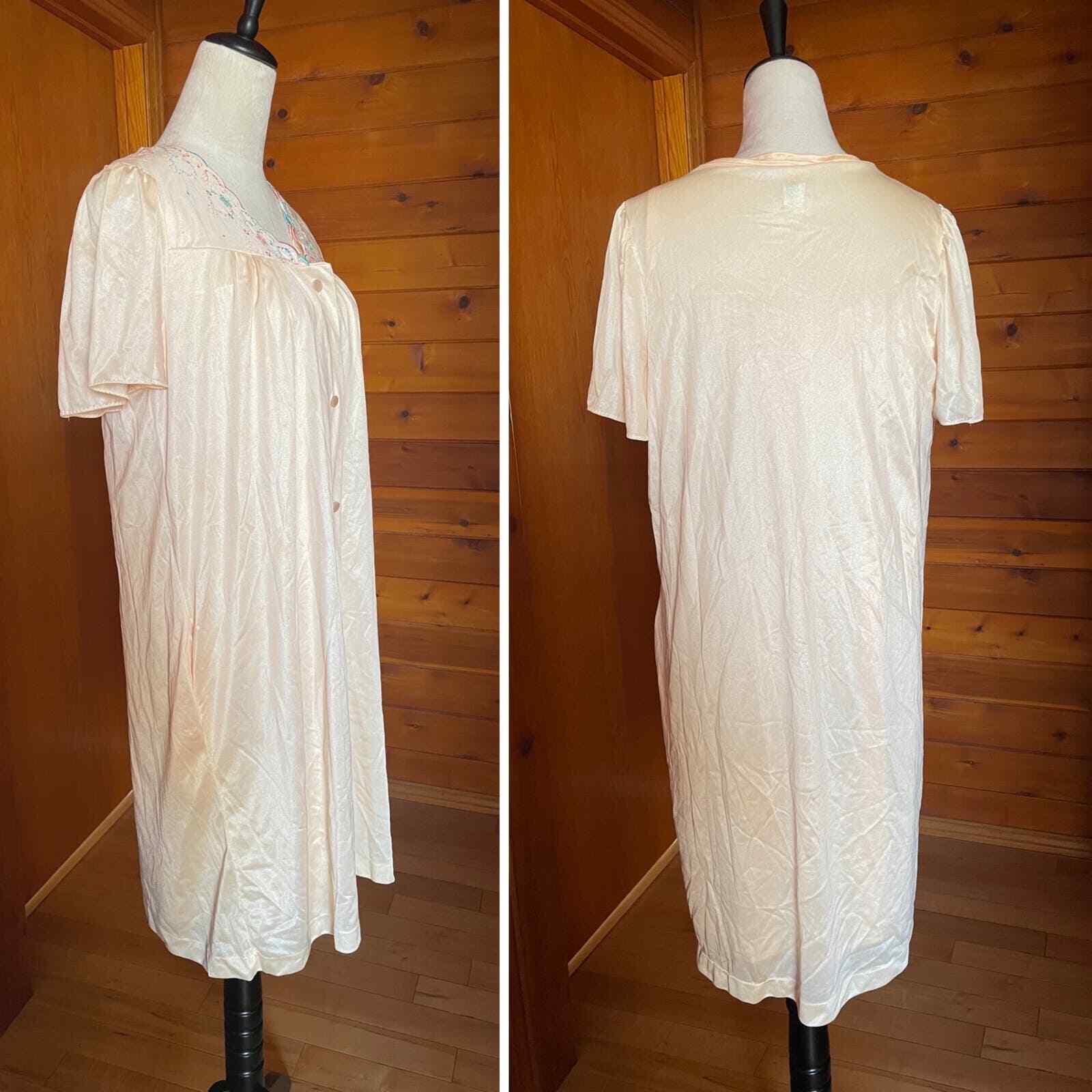 Vintage Katz Embroidered Peach Nylon Peignoir Shift and Robe Set Sz Medium