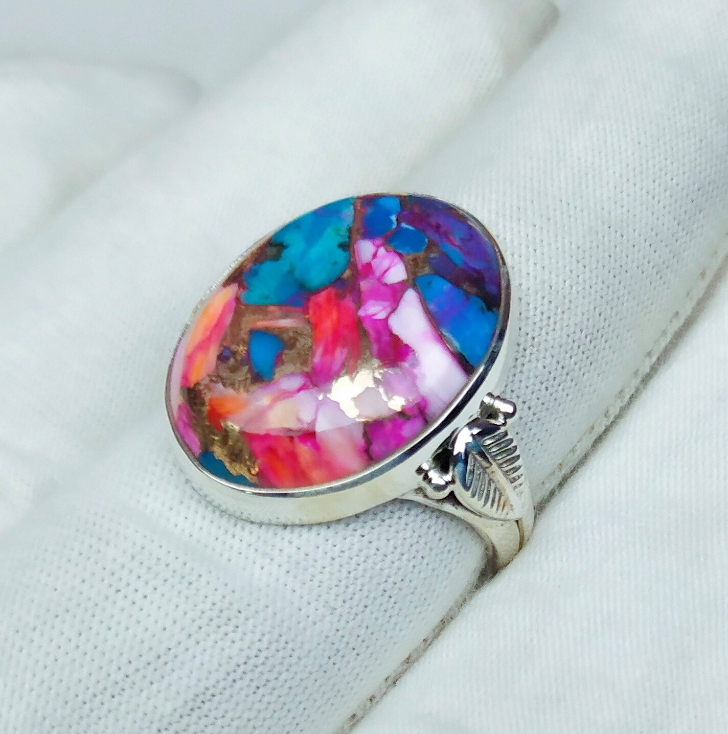 Spiny Oyster Turquoise Ring 925 Sterling Silver Handmade Ring R107