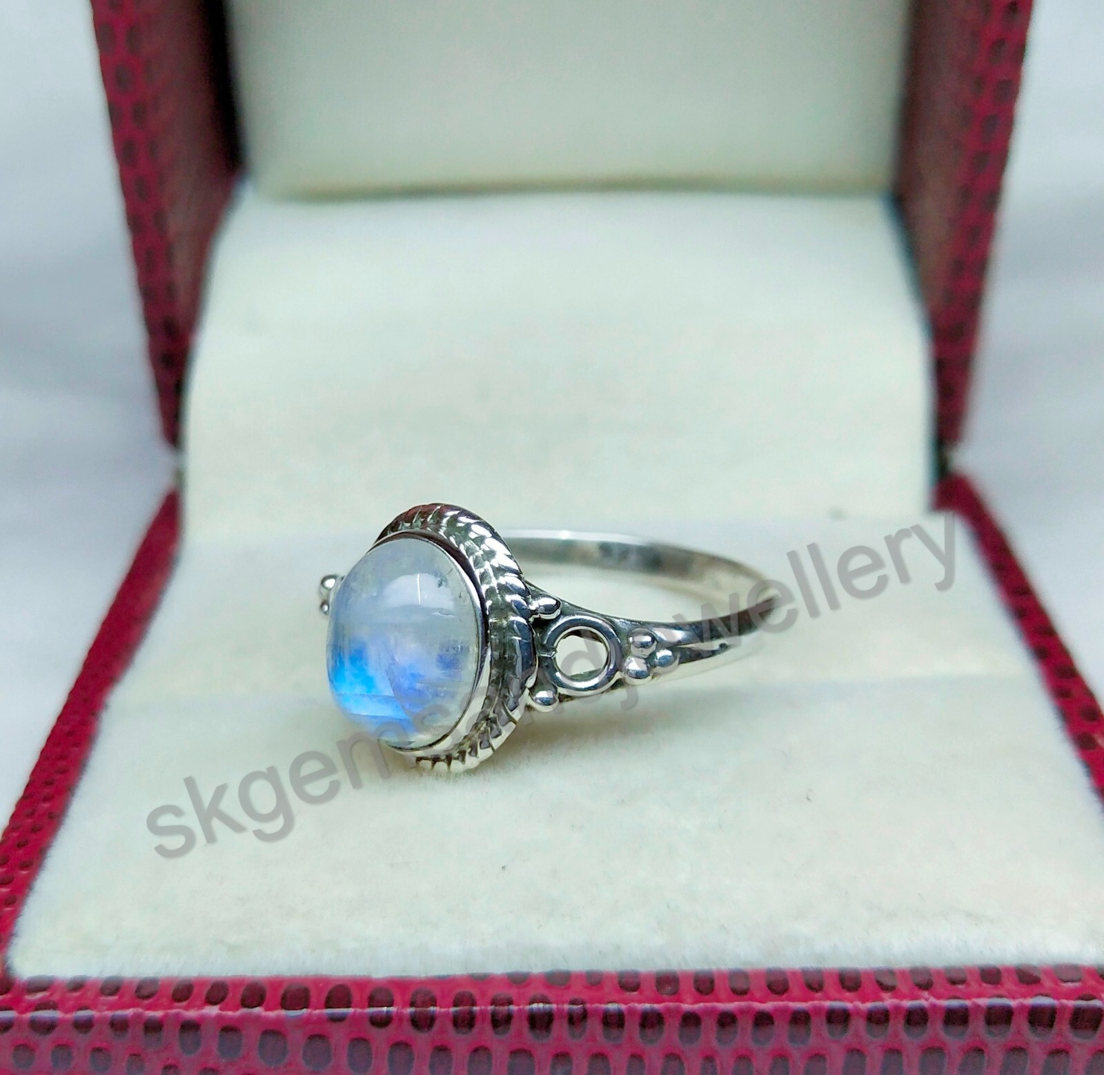 как выглядит Rainbow Moonstone Ring 925 Sterling Silver Ring Handmade Fine Ring All Size фото