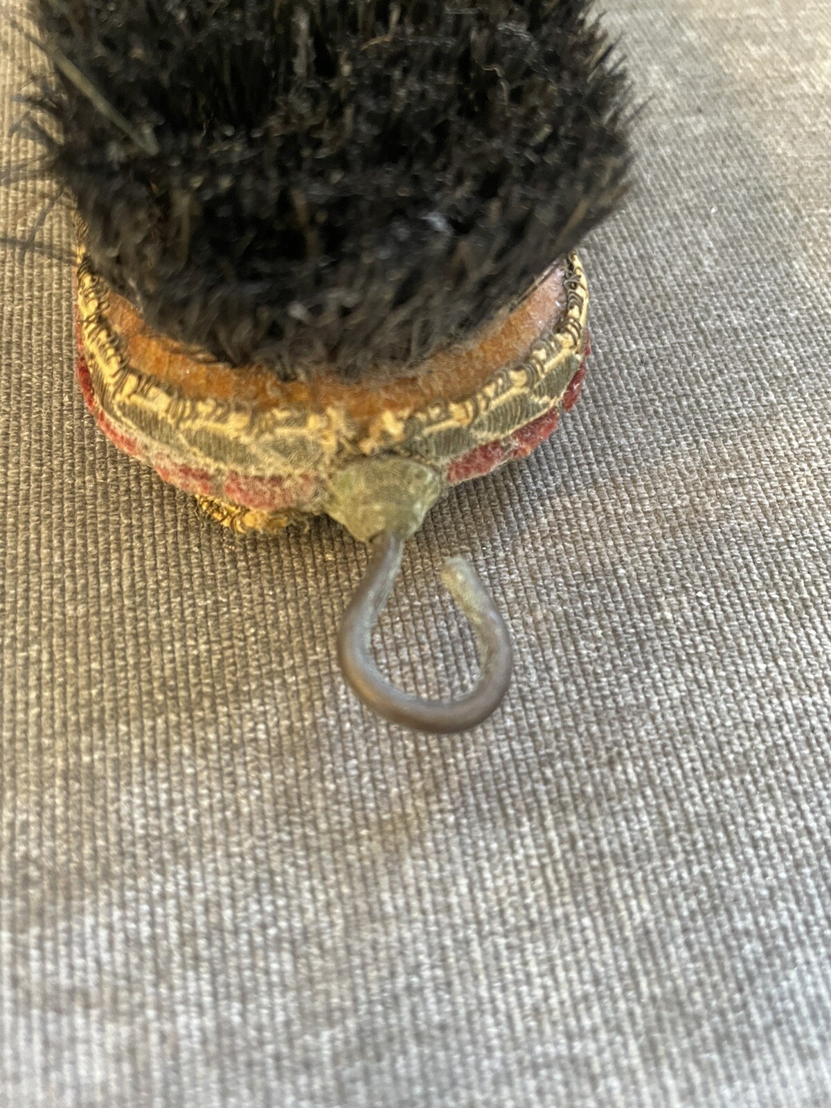 как выглядит Floral Regency Flocked Tapestry Wall Hanging Clothes Brush 1950 s Vintage фото