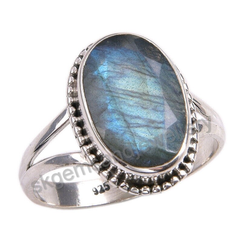 Natural Blue Labradorite 925 Sterling Silver Gemstone Ring For Her Promise Ring