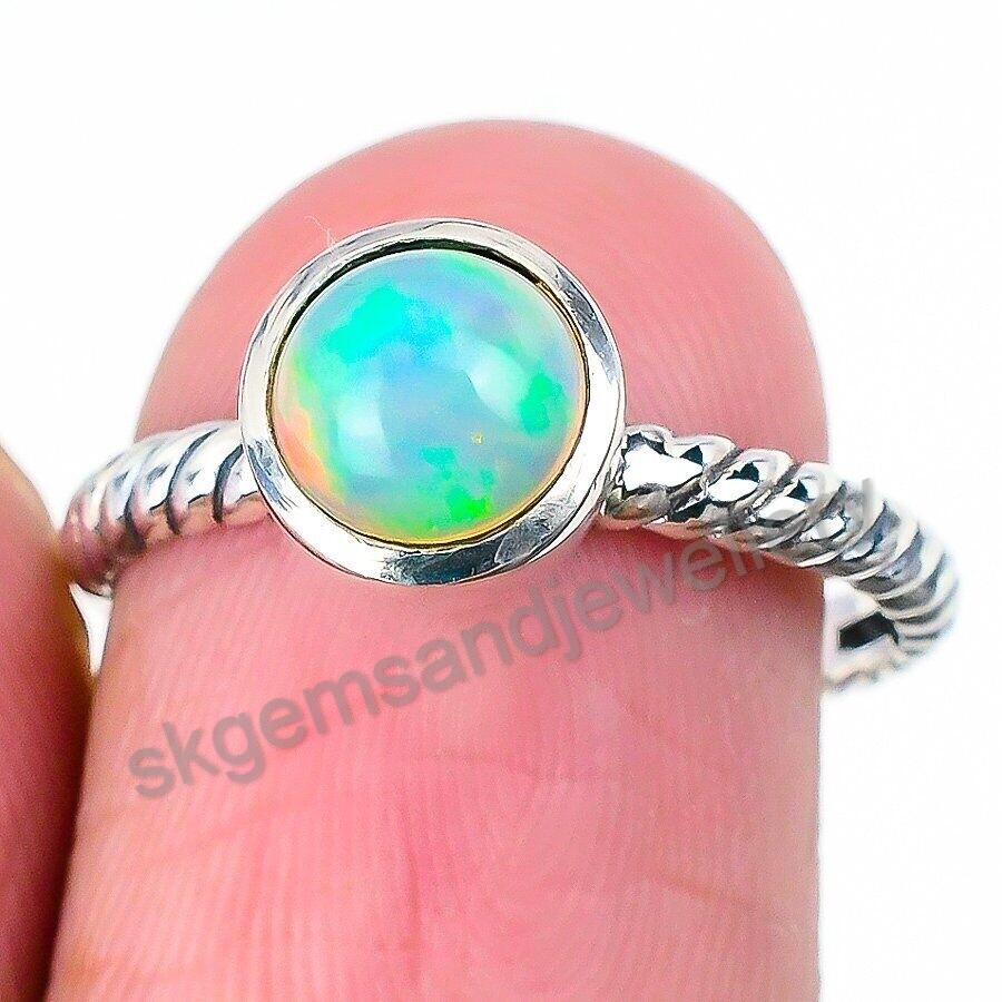 Ethiopian Opal Round 925 Sterling Silver Twisted Band Ring For Her